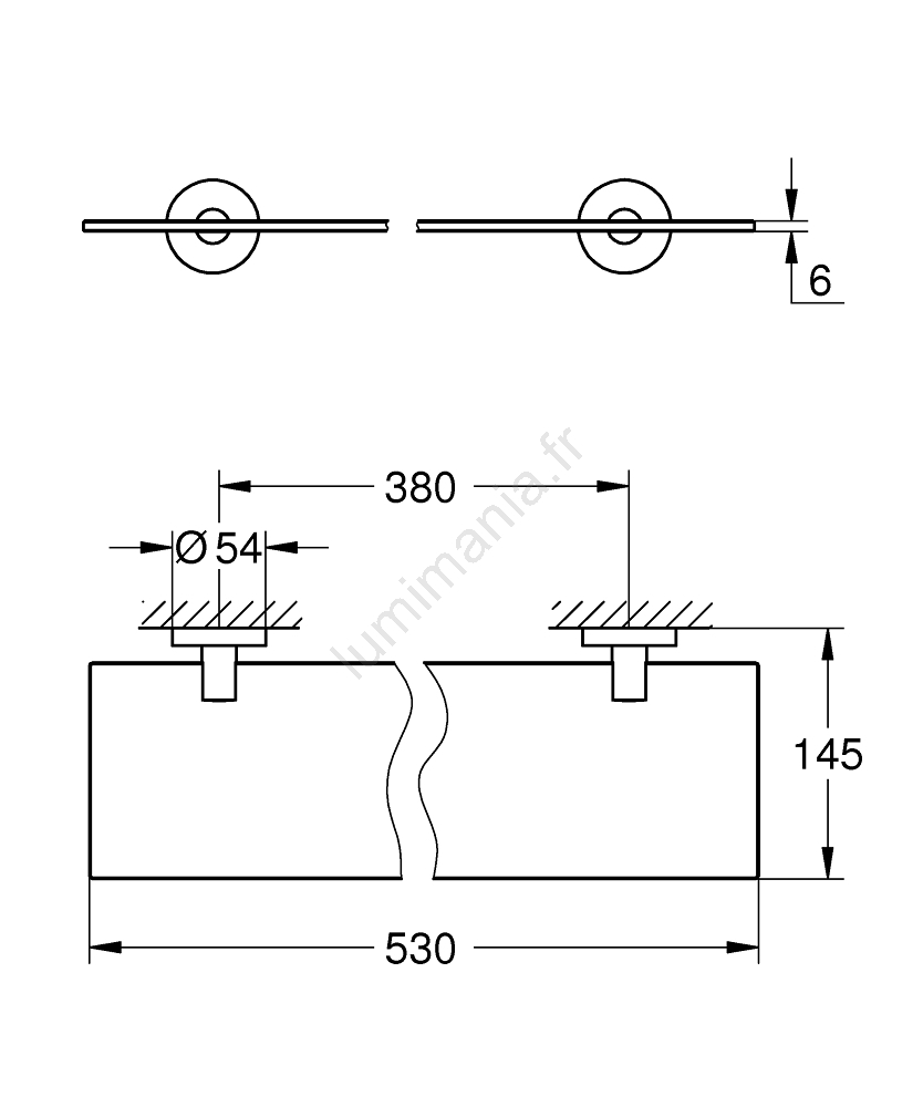 • Longueur totale 530 mm, profondeur utile 380 mm, offrant suffisamment d’espace pour vos essentiels de salle de bains.