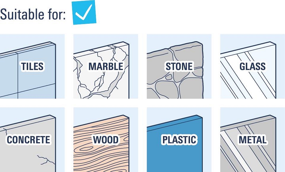 • Montage possible par vissage (vis et chevilles inclus) ou par collage à l'aide de GROHE QuickGlue (vendu séparément).