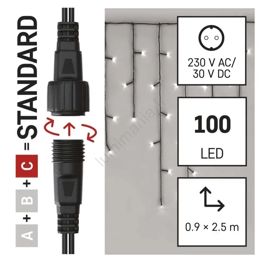 • Guirlande LED extérieure 100xLED/2,5x0,9m IP44 blanc froid