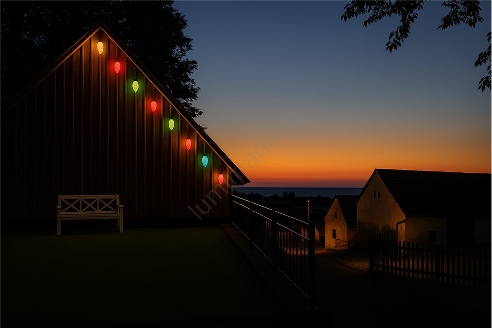 Guirlande LED d'extérieur CONE FILAMENT 20xE10, 19 m — multicolore / blanc chaud, IP44, fabriquée dans l'UE