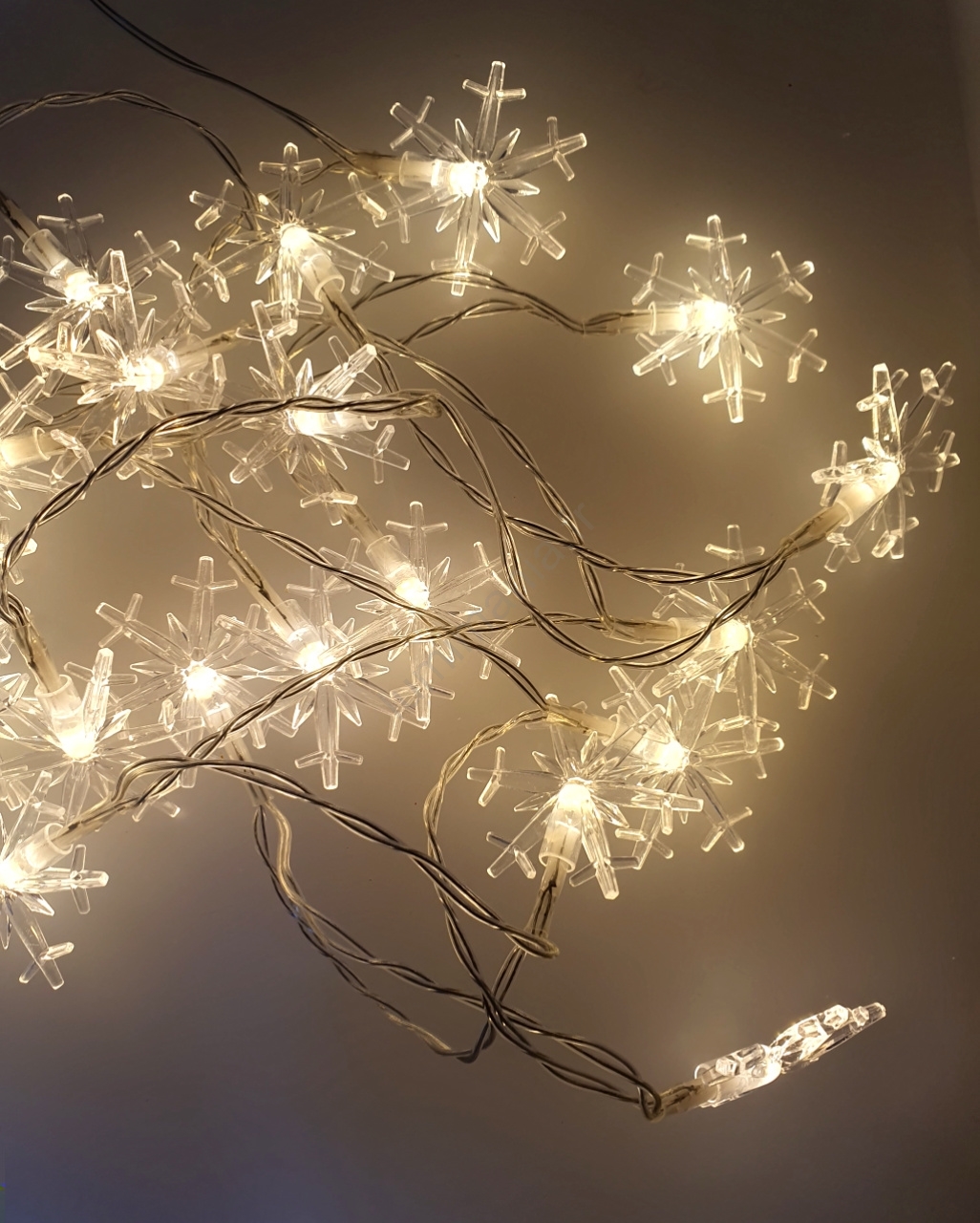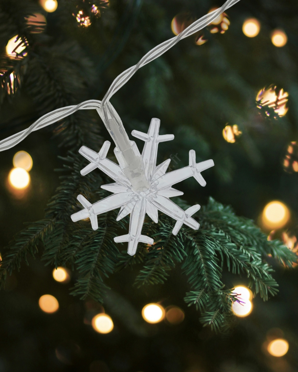 Guirlande lumineuse LED de Noël pour extérieur, 20 LED, alimentée par 2 piles AA, 2,2 m, IP44, blanc chaud, motif flocons de neige
