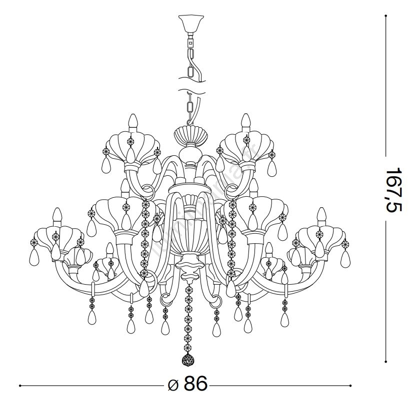 Ideal Lux - Suspension filaire en cristal CONTINENTAL 12xE14/40W/230V d. 86 cm transparent