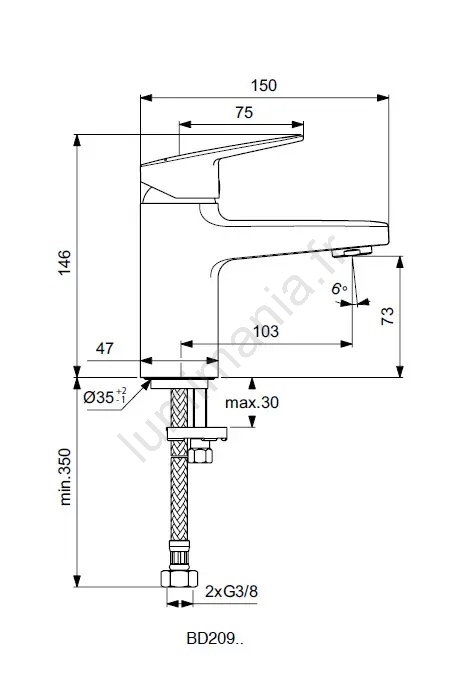 • Des flexibles G3/8 sont fournis pour un raccordement facile à l'alimentation en eau.