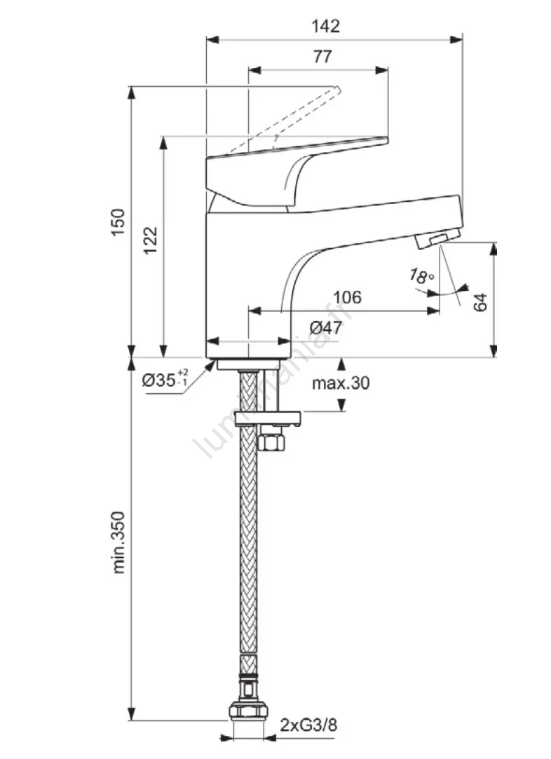 • Il offre une zone de confort (distance entre le bec et le lavabo) de 64 mm.