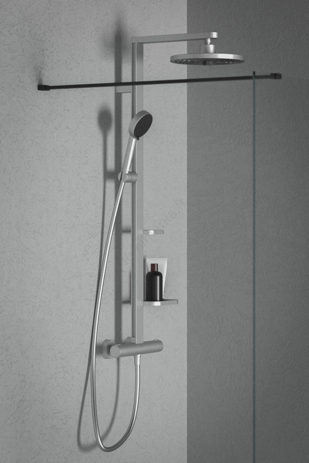 • L'ensemble de douche Ceratherm ALU+ constitue une solution complète avec un mitigeur thermostatique argenté, une pomme de douche, une douchette et une barre de douche.
