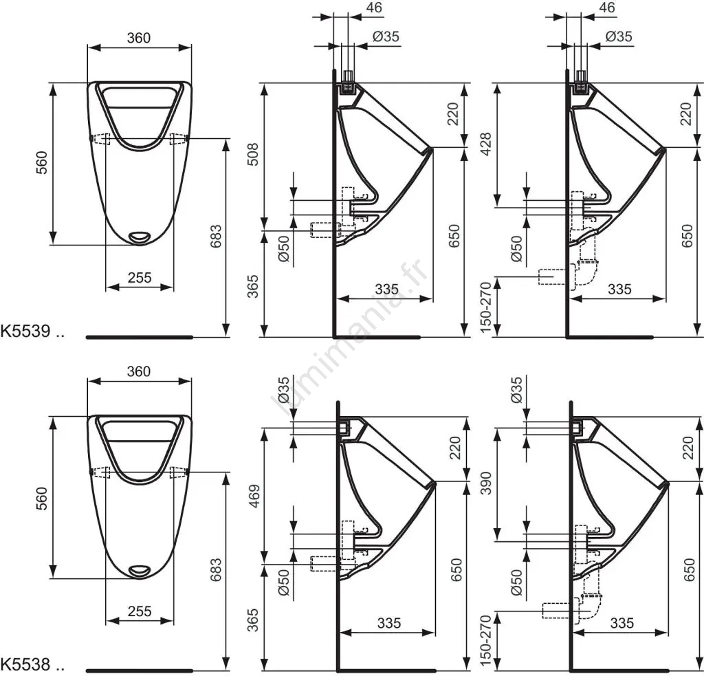 Ideal Standard K553901 - Urinoir EUROVIT alimentation supérieure, évacuation arrière céramique/blanc