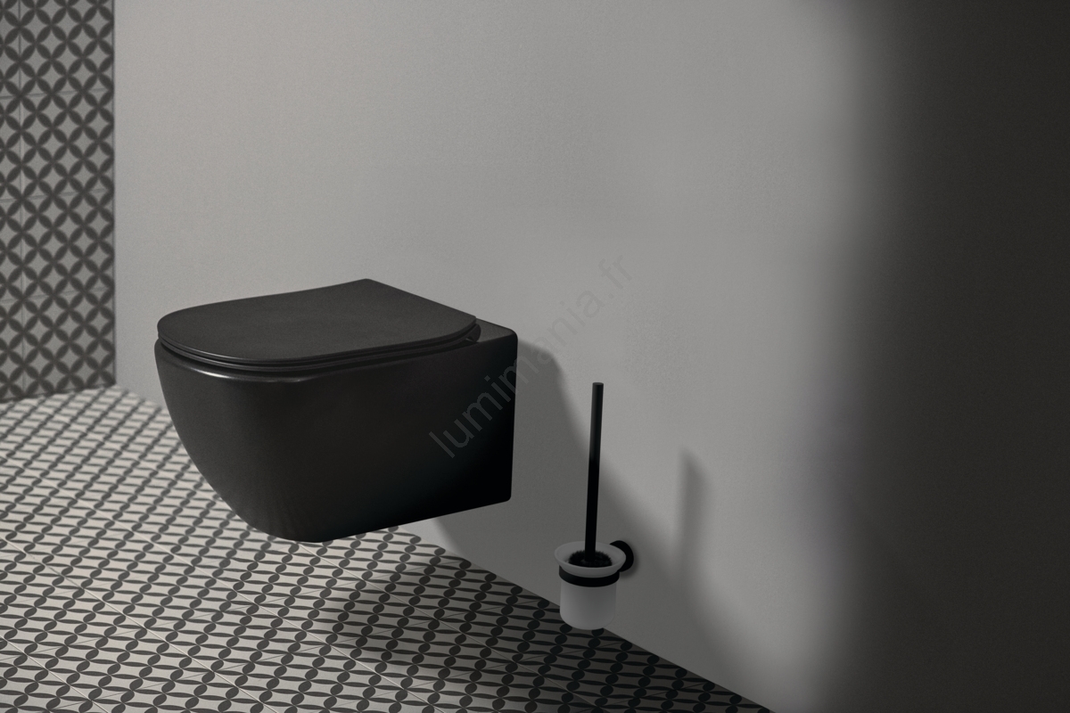 • Le set comprend un siège WC ultra-plat en noir soyeux, équipé d'une fermeture amortie SoftClose pour une fermeture silencieuse et d'un système de retrait rapide pour un nettoyage aisé.