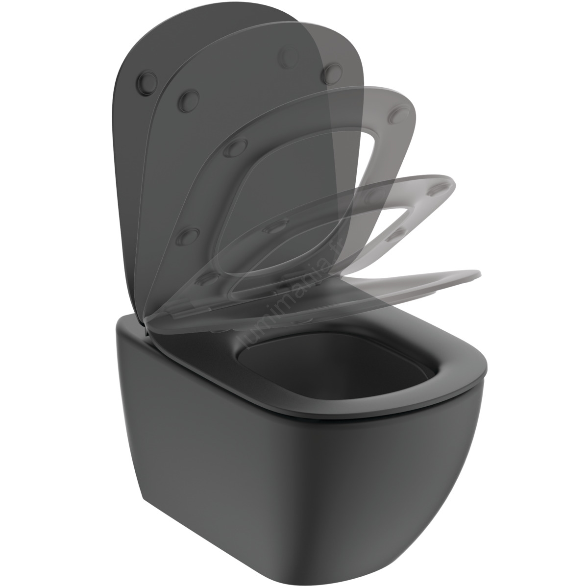 Ideal Standard T3546V3 - WC suspendu TESI en céramique avec abattant à fermeture douce, finition noire