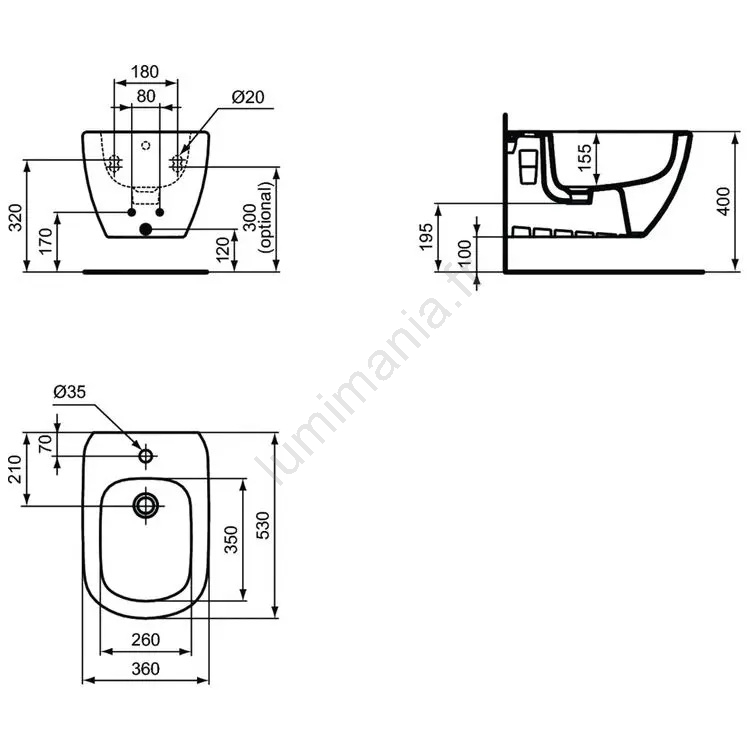 • Le bidet comporte un perçage unique pour l'installation d'un robinet de bidet.