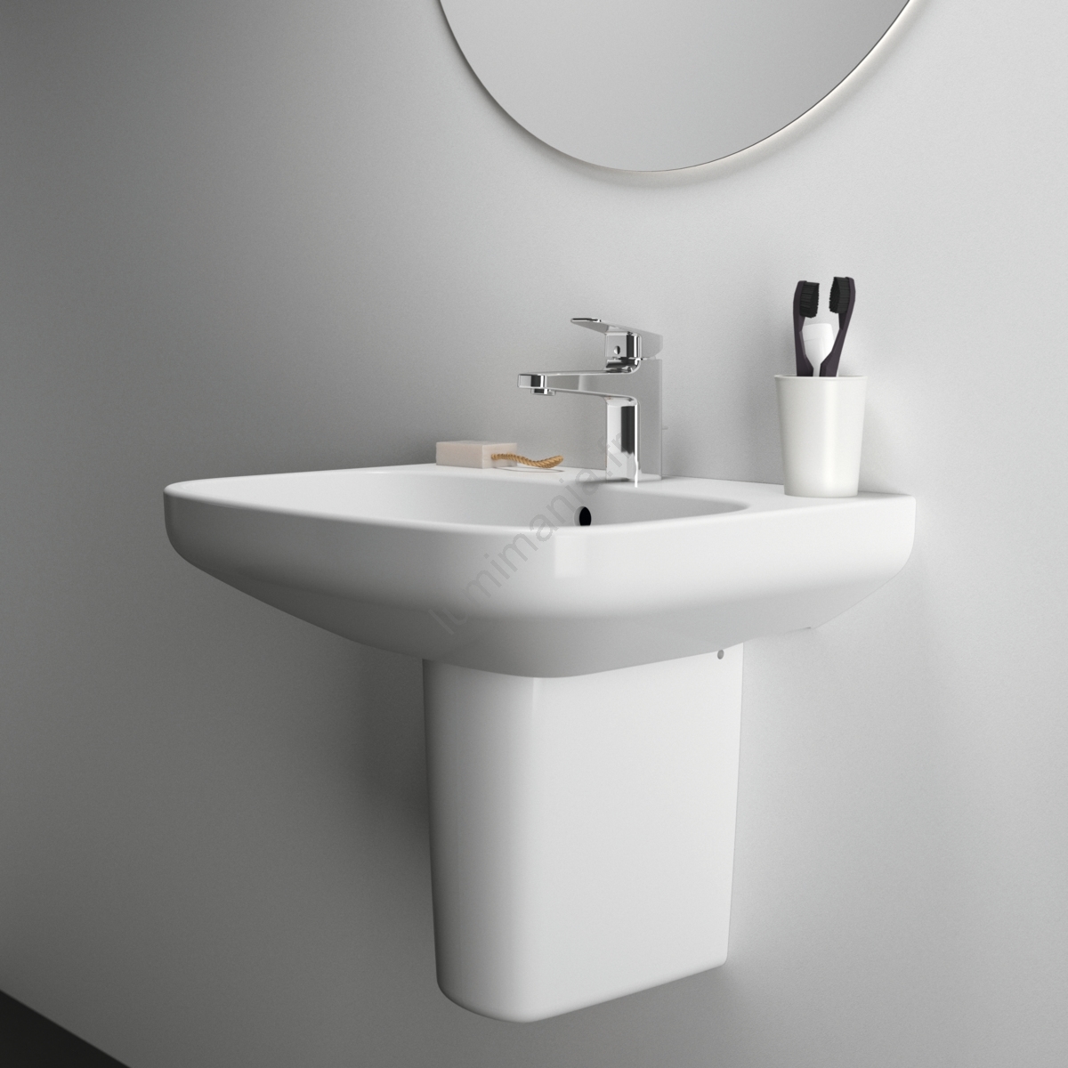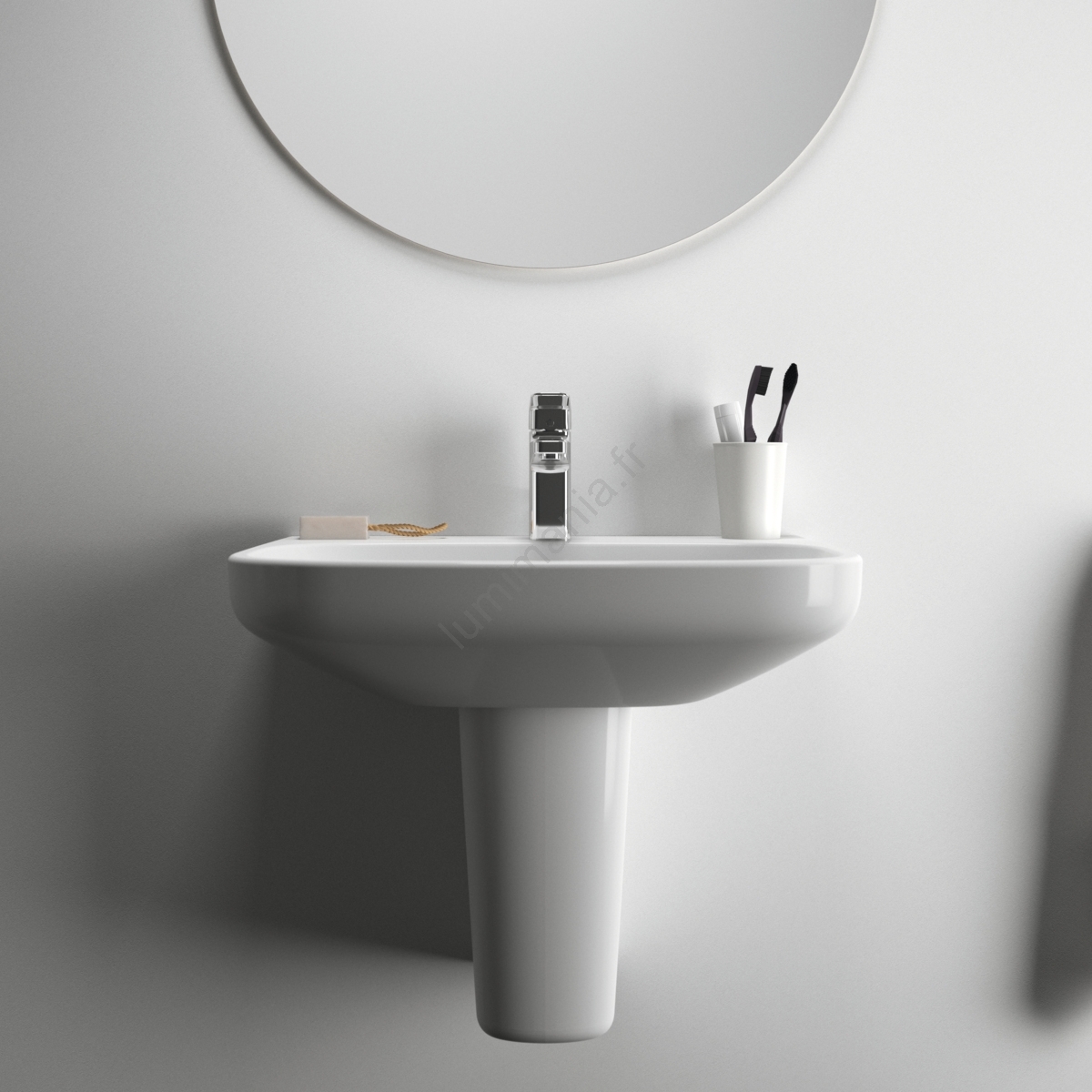 • Pour dissimuler esthétiquement le siphon, le lavabo peut être associé à une colonne ou à une demi-colonne.