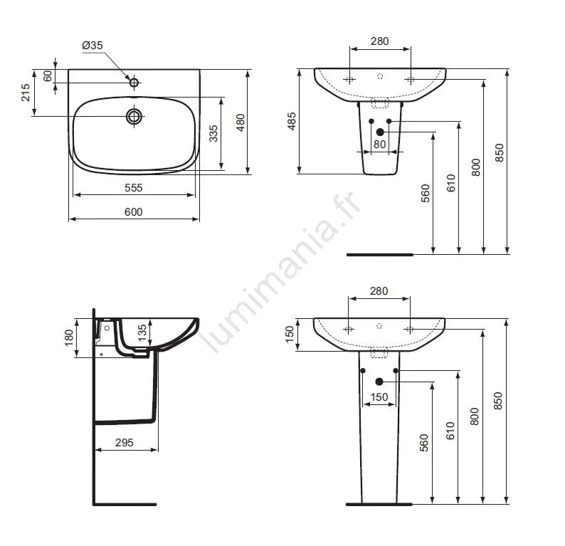 • Il dispose d'un perçage pré-percé pour l'installation du robinet de lavabo, situé au centre.