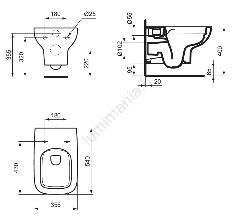 • L'abattant WC et le réservoir de chasse ne sont pas inclus dans le colis.