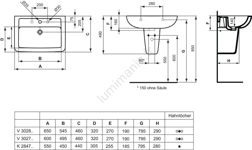 • Le lavabo dispose d'un seul perçage prévu pour l'installation d'un robinet.