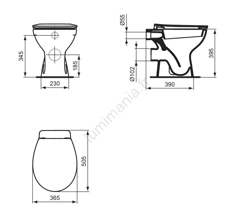 • L'abattant, la citerne de chasse et le matériel de fixation ne sont pas fournis.