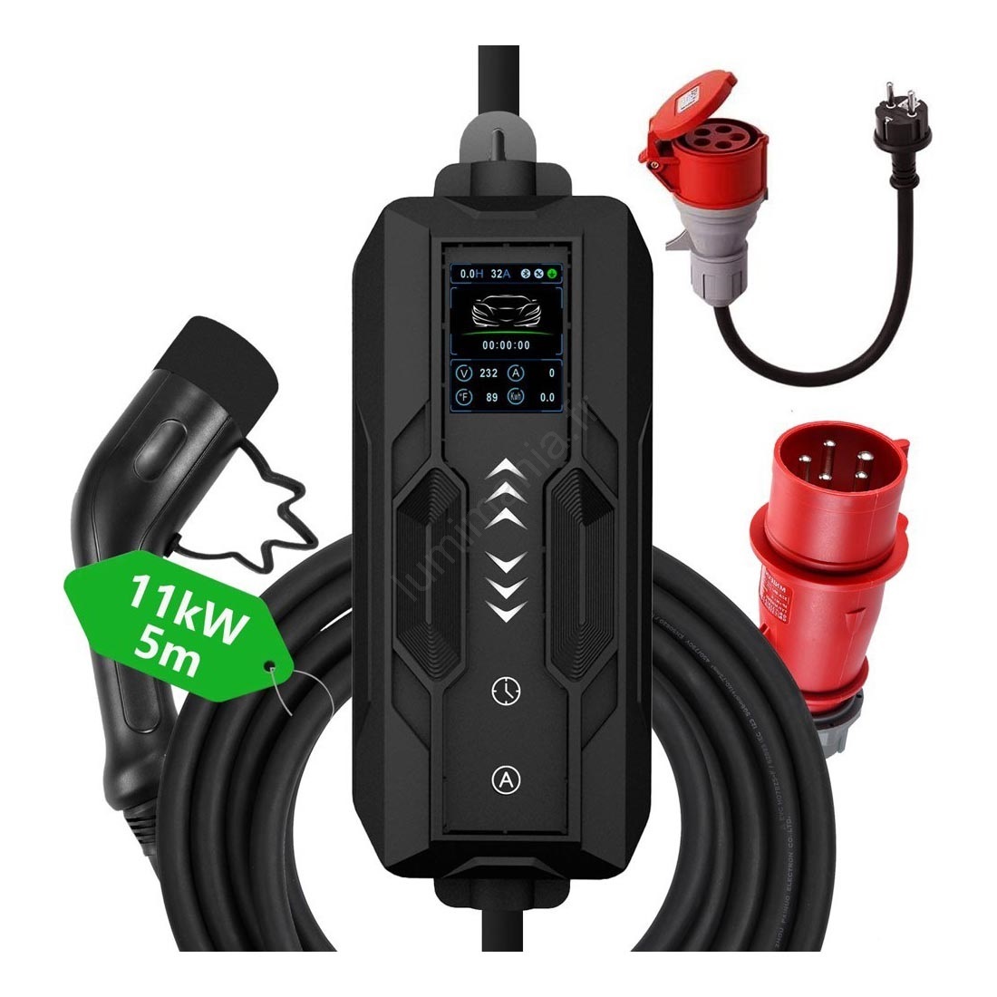 Immax - Station de recharge portable EV pour véhicules électriques, Type 2 (AC) 16 A / 380 V, 11 kW, avec prise 230 V et câble de 5 m, compatible Wi‑Fi Tuya