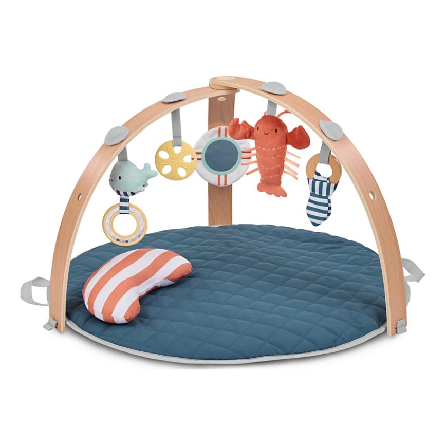 • Comprend 5 jouets amovibles en matériaux de qualité : un homard en peluche avec clochette, un anneau en bois avec insert en tissu, une baleine hochet, un miroir en forme de bouée de sauvetage et un anneau de dentition.