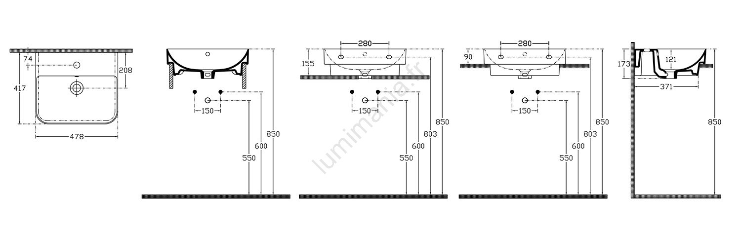 • Il peut être suspendu au mur, posé sur un meuble ou encastré dans un plan de travail.