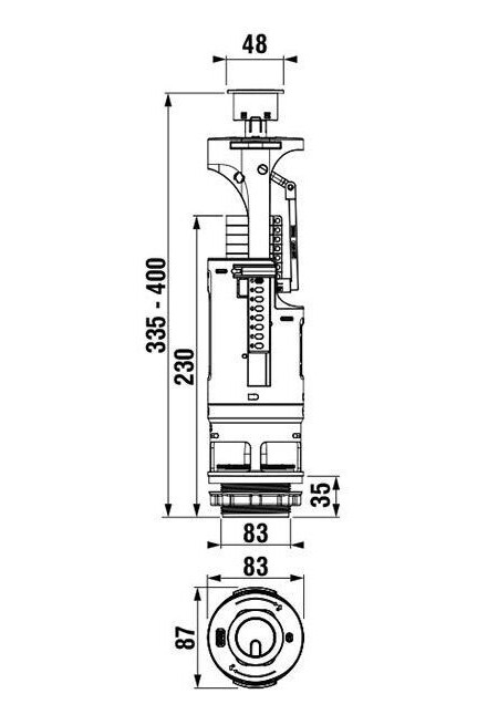 • Mécanisme de chasse d'eau double pour réservoir de WC.