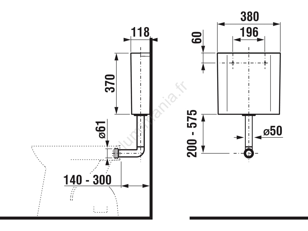 • Réservoir de chasse offrant une grande et une petite chasse grâce au système à double chasse.