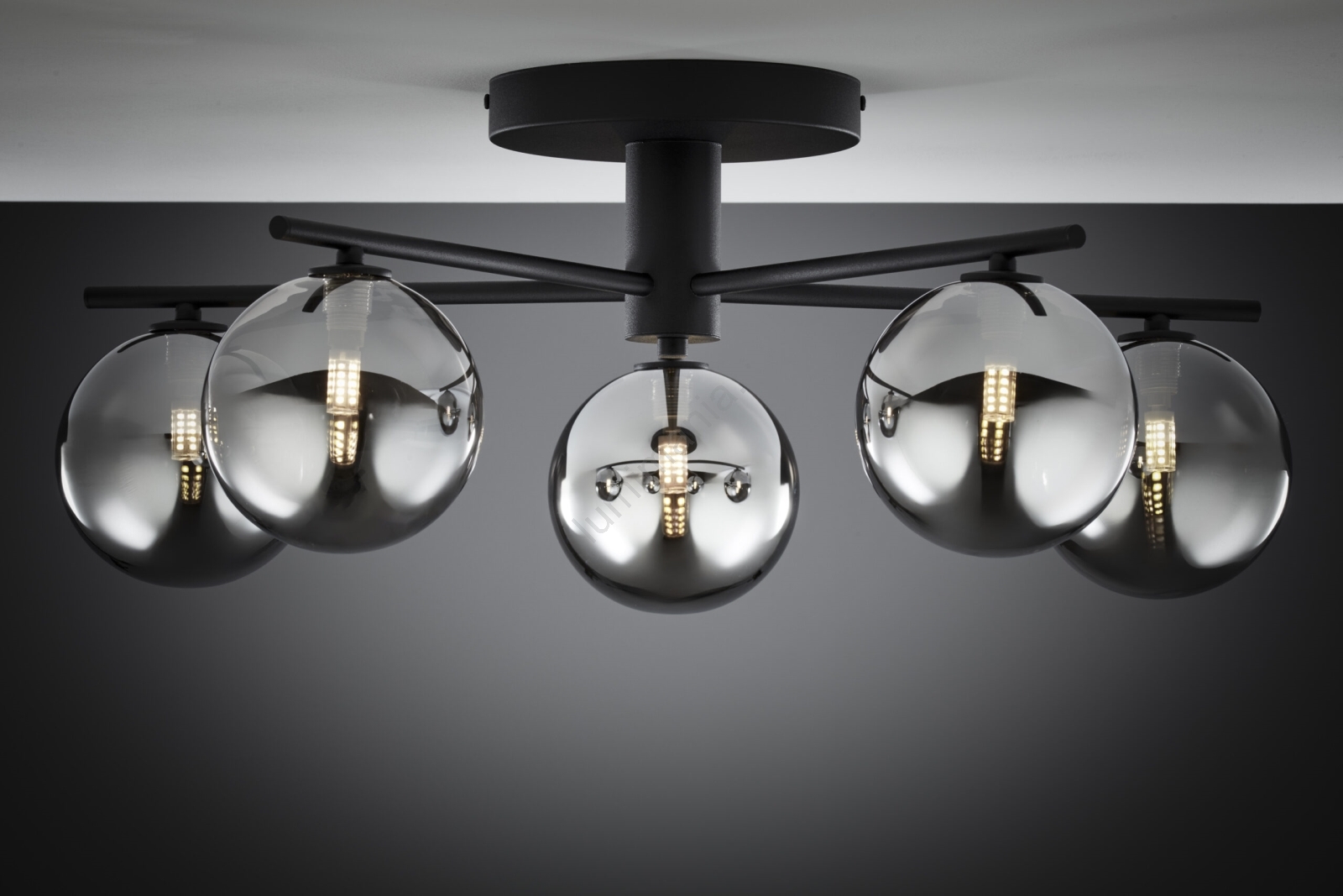 Jupiter 2048 - Plafonnier PRATO 5xG9/14W/230V noir/gris fumé caractérise un design agréable et fonctionnel.  Une ampoule à culot G9 convient pour ce luminaire. Ici, vous pouvez acheter d'autres ampoules à des prix avantageux. Vous aurez un ajout intéressant dans votre intérieur.