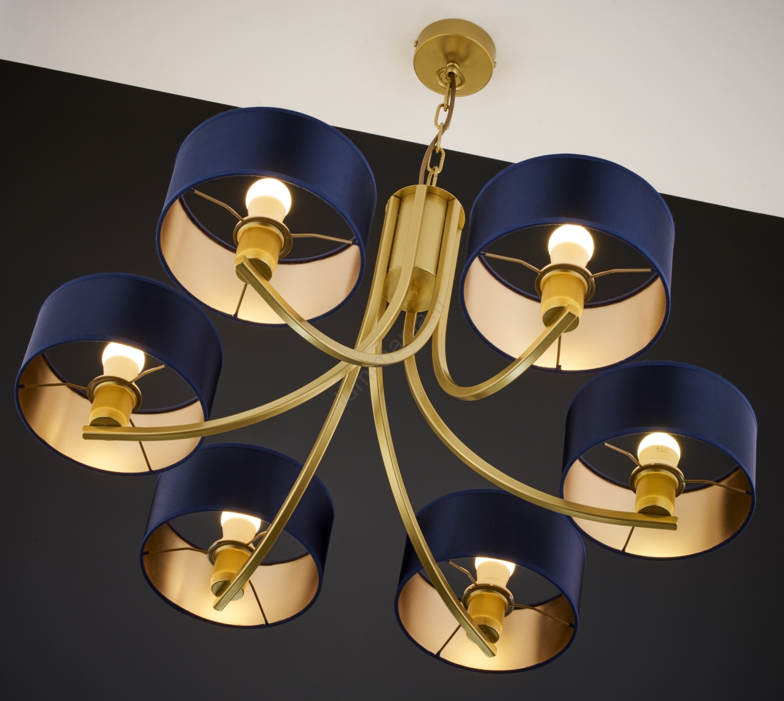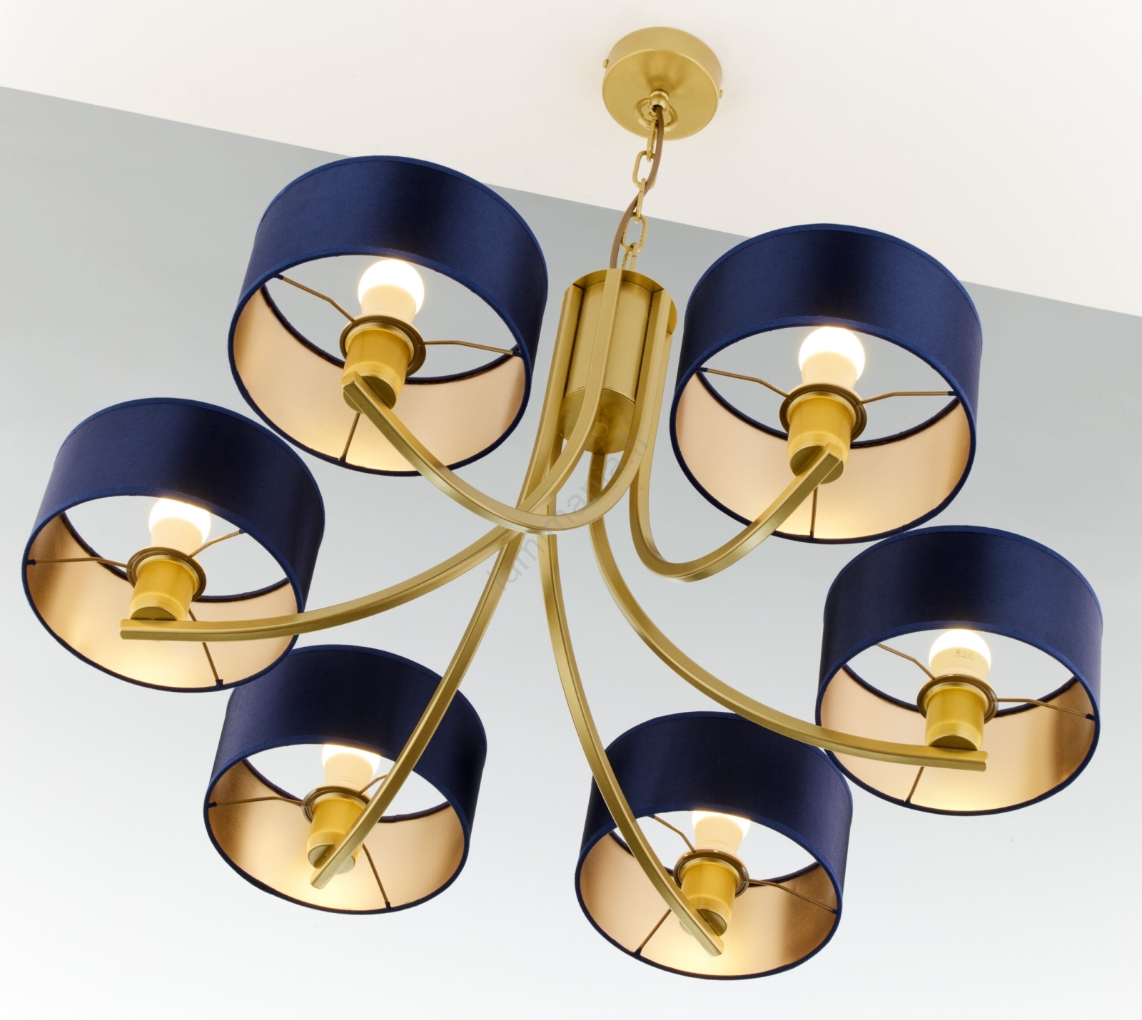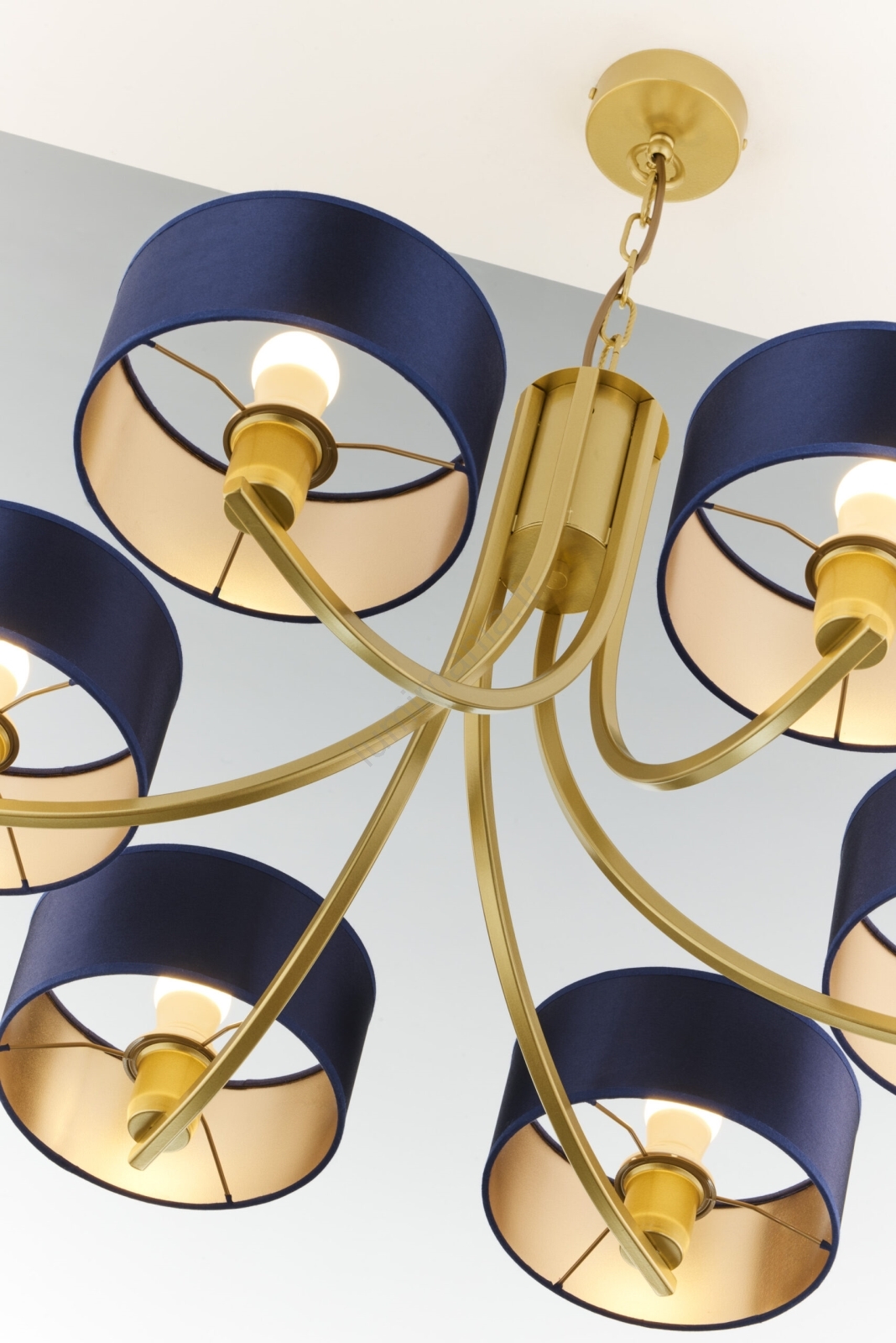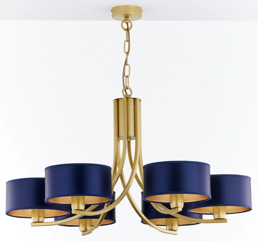 Jupiter 2095 - Lustre à chaîne ARTHUR 6xE27/15W/230V bleu/doré caractérise un design agréable et fonctionnel.  Une ampoule à culot E27 convient pour ce luminaire. Ici, vous pouvez acheter d'autres ampoules à des prix avantageux. Vous aurez un ajout intéressant dans votre intérieur.