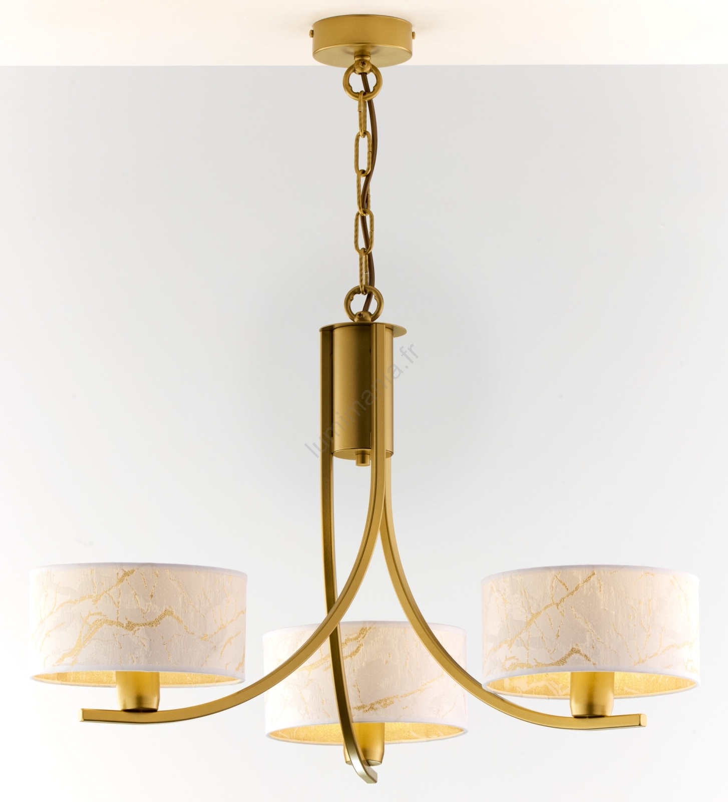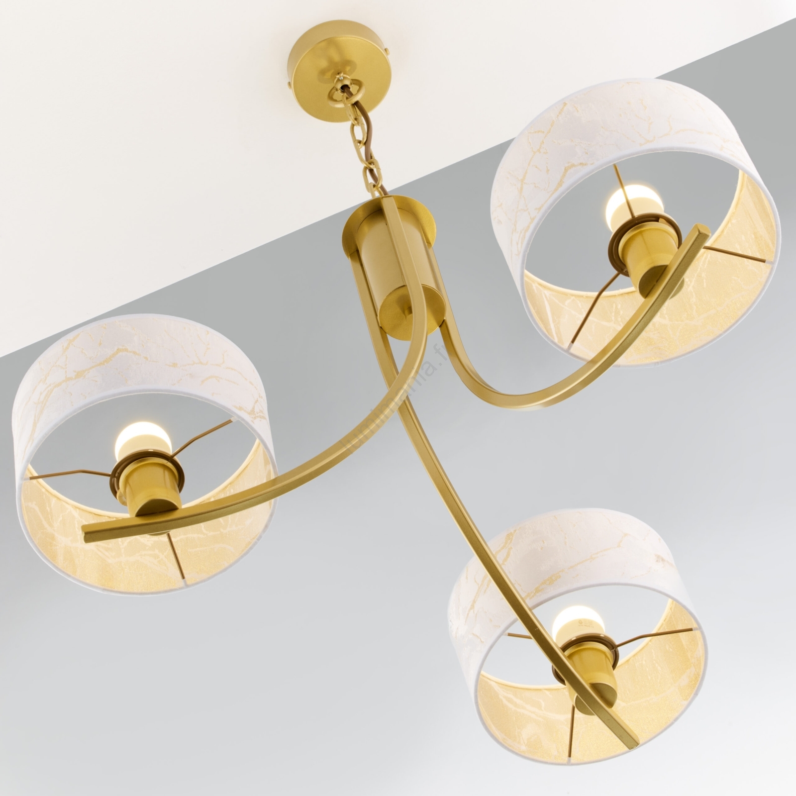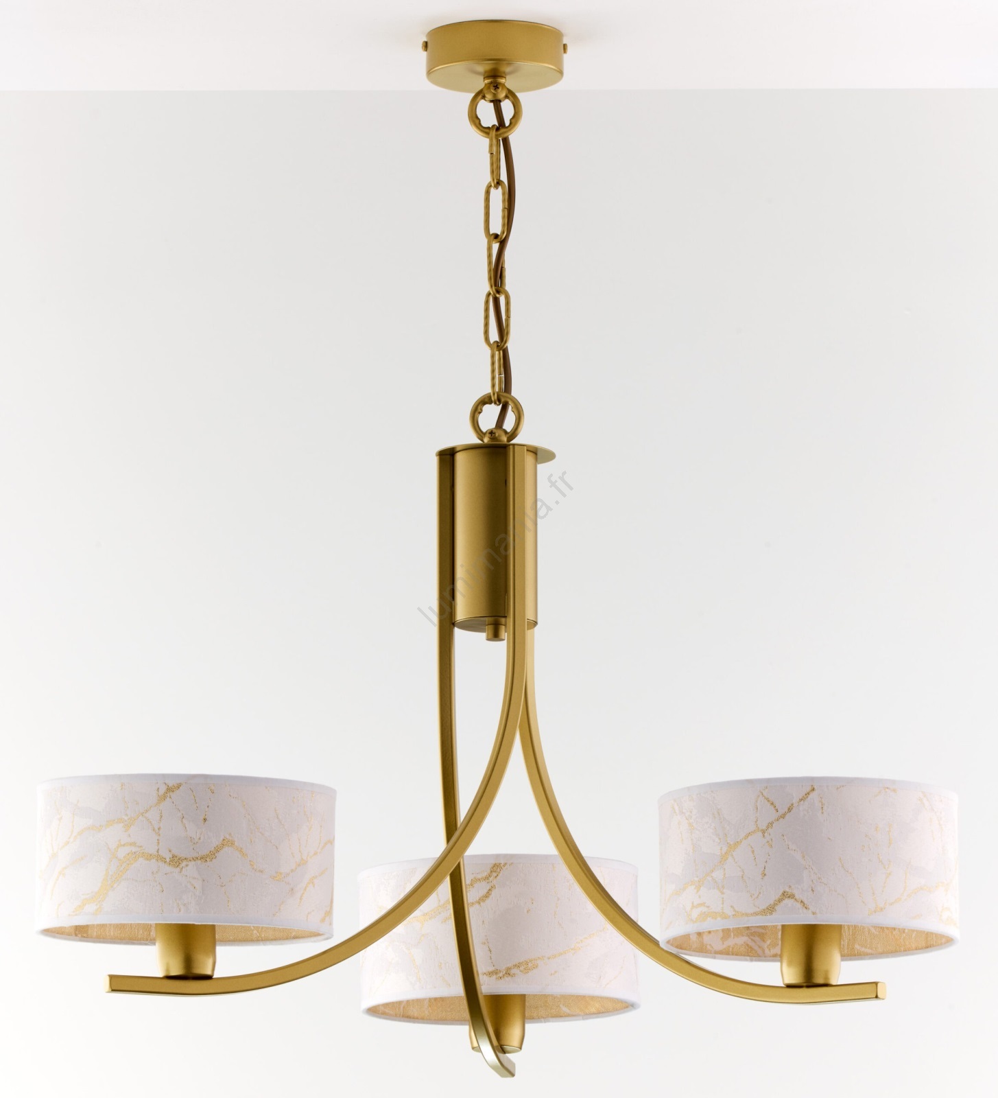 Jupiter 2096 - Lustre sur chaîne ARTHUR 3xE27/15W/230V blanc/doré/décor marbre caractérise un design agréable et fonctionnel.  Une ampoule à culot E27 convient pour ce luminaire. Ici, vous pouvez acheter d'autres ampoules à des prix avantageux. Vous aurez un ajout intéressant dans votre intérieur.