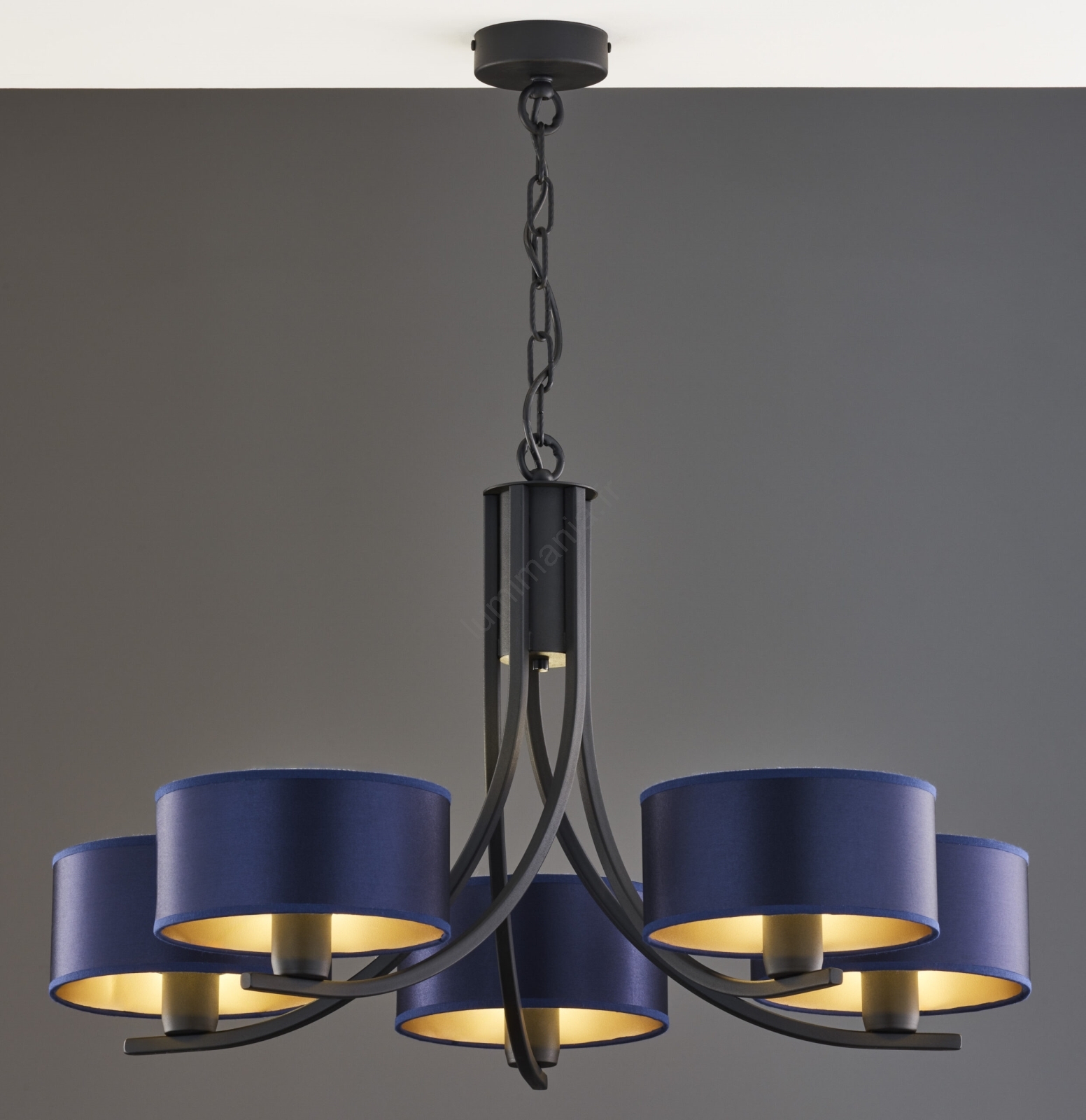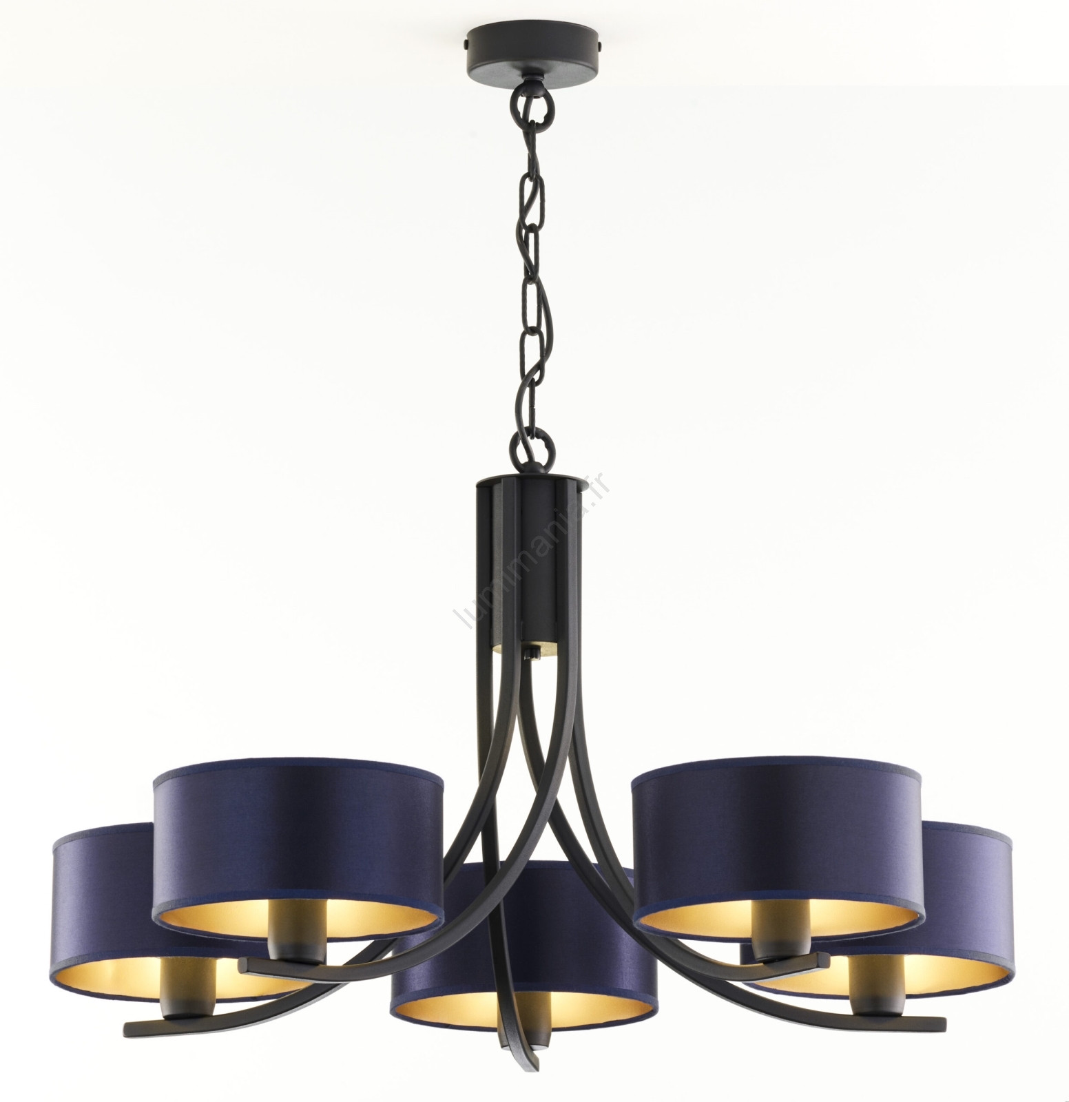 Jupiter 2101 - Lustre sur chaîne ARTHUR 5xE27/15W/230V bleu/noir caractérise un design agréable et fonctionnel.  Une ampoule à culot E27 convient pour ce luminaire. Ici, vous pouvez acheter d'autres ampoules à des prix avantageux. Vous aurez un ajout intéressant dans votre intérieur.