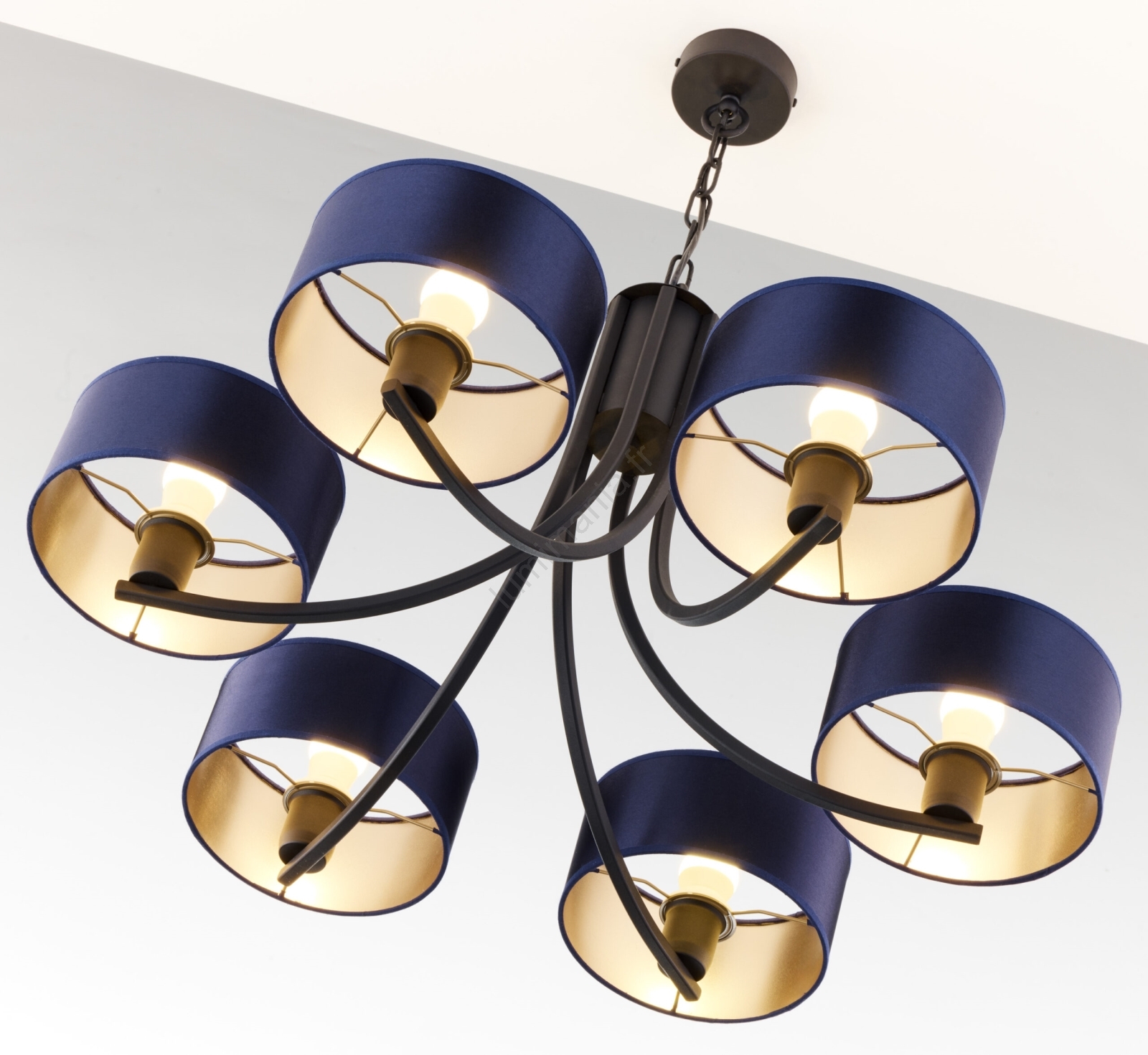 Jupiter 2102 - Lustre à chaîne ARTHUR 6xE27/15W/230V bleu/noir caractérise un design agréable et fonctionnel.  Une ampoule à culot E27 convient pour ce luminaire. Ici, vous pouvez acheter d'autres ampoules à des prix avantageux. Vous aurez un ajout intéressant dans votre intérieur.