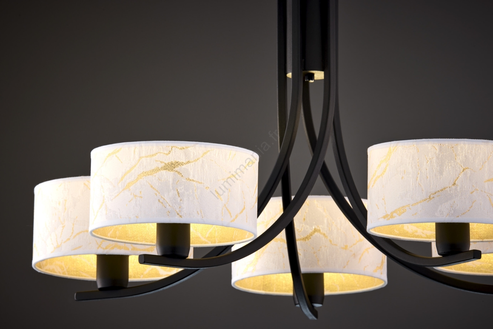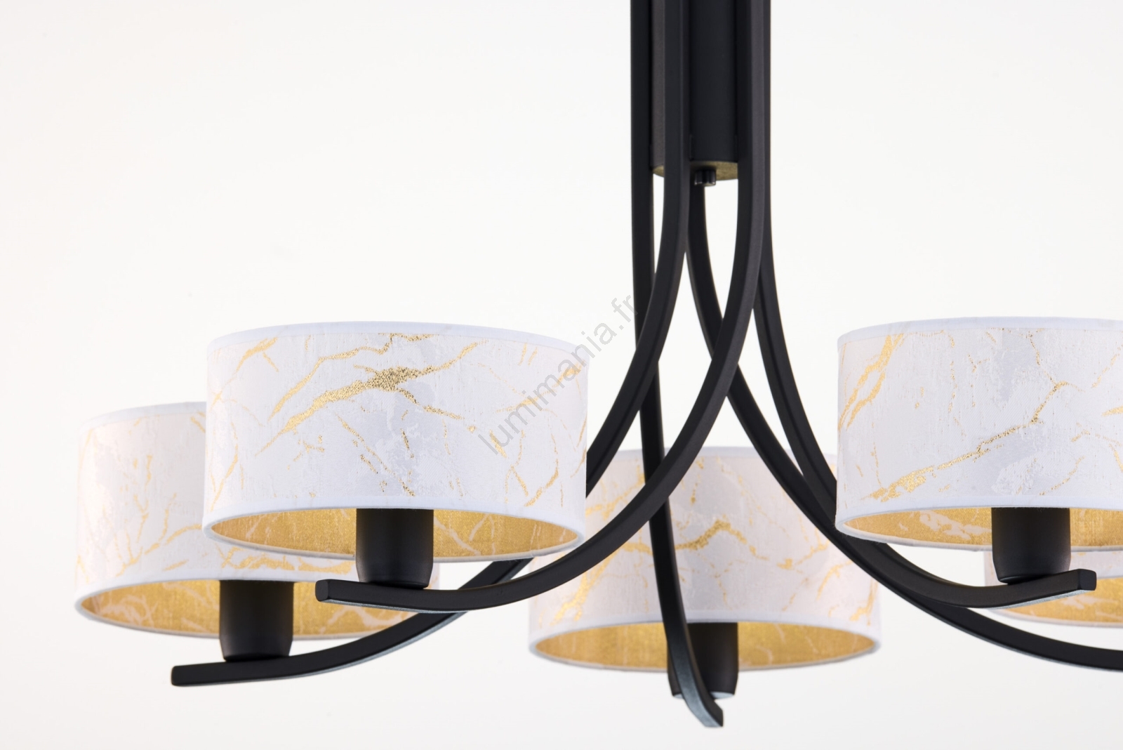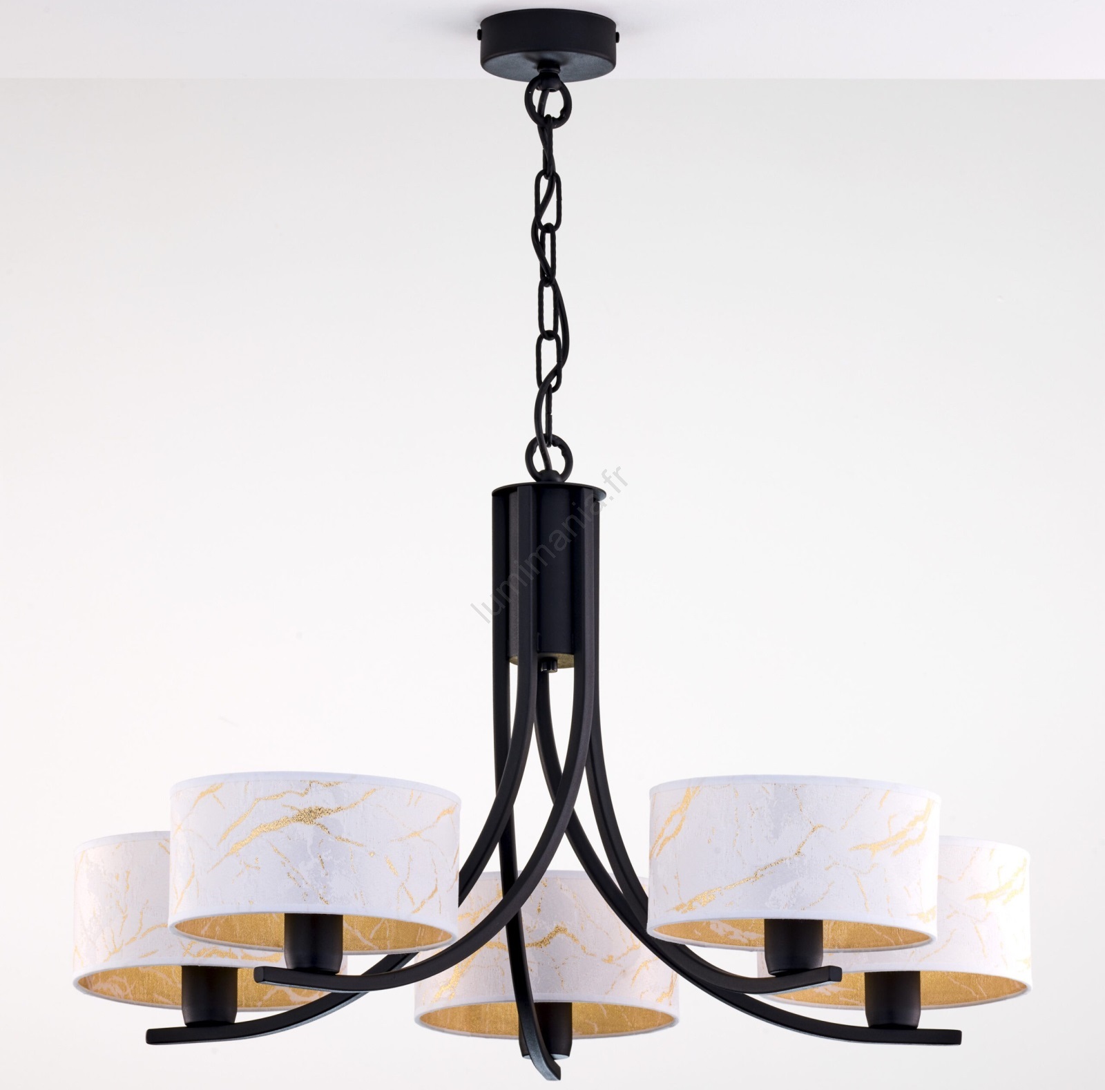 Jupiter 2104 - Lustre à chaîne ARTHUR 5xE27/15W/230V blanc/noir/décor marbre
