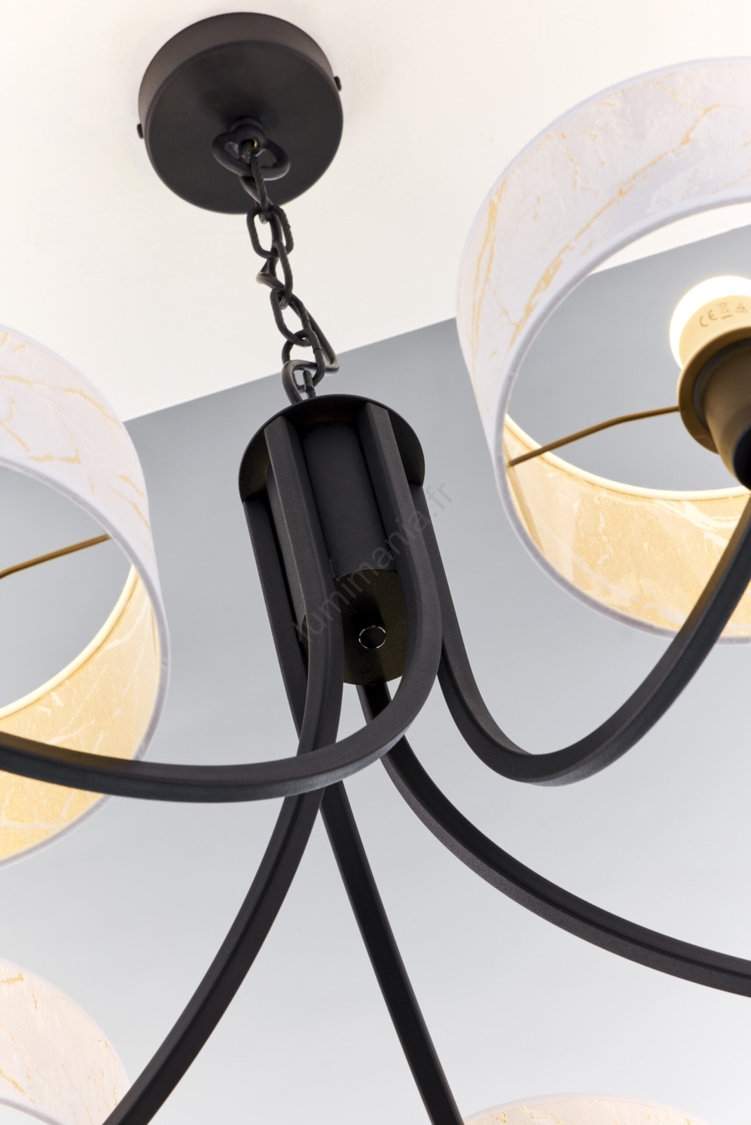 Jupiter 2104 - Lustre à chaîne ARTHUR 5xE27/15W/230V blanc/noir/décor marbre caractérise un design agréable et fonctionnel.  Une ampoule à culot E27 convient pour ce luminaire. Ici, vous pouvez acheter d'autres ampoules à des prix avantageux. Vous aurez un ajout intéressant dans votre intérieur.