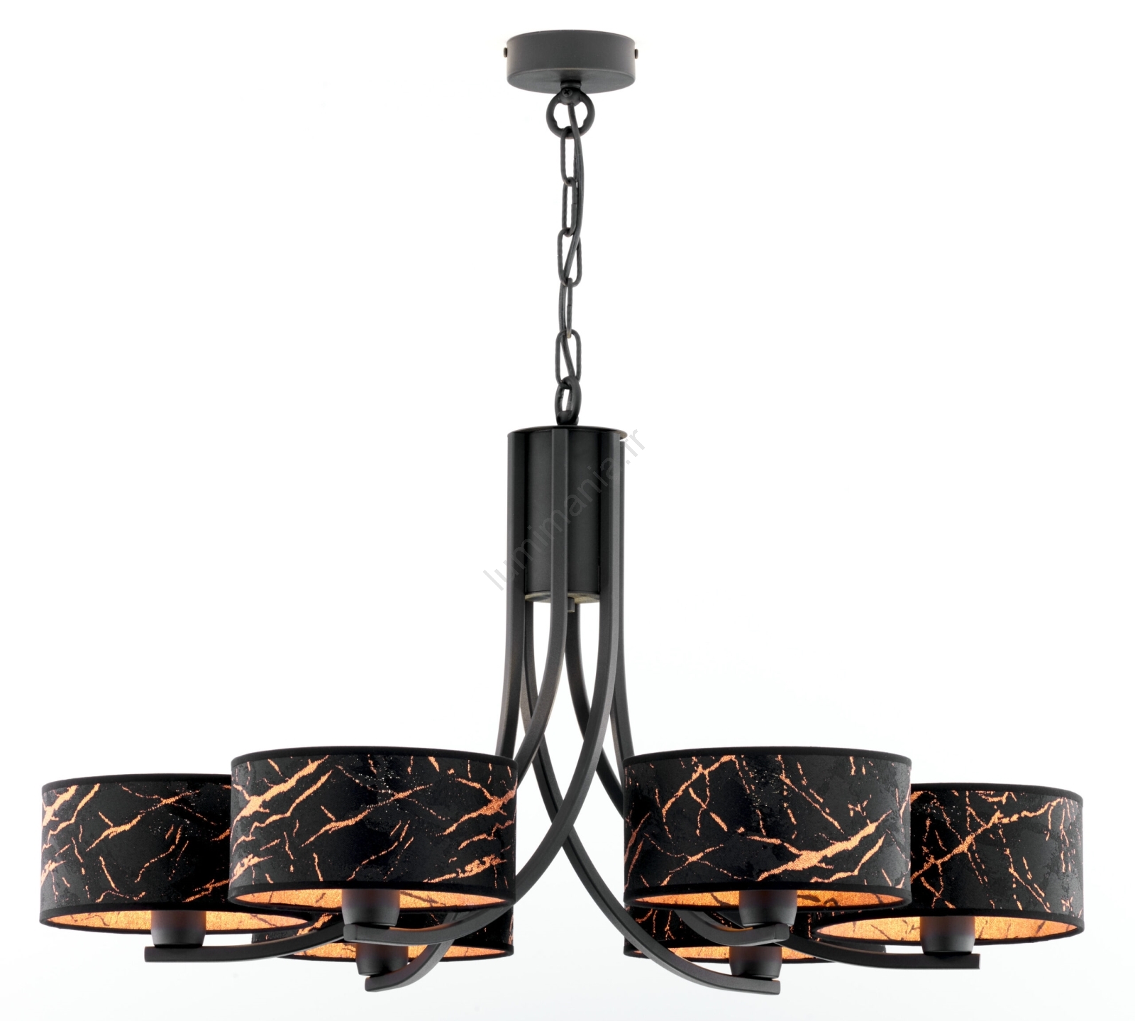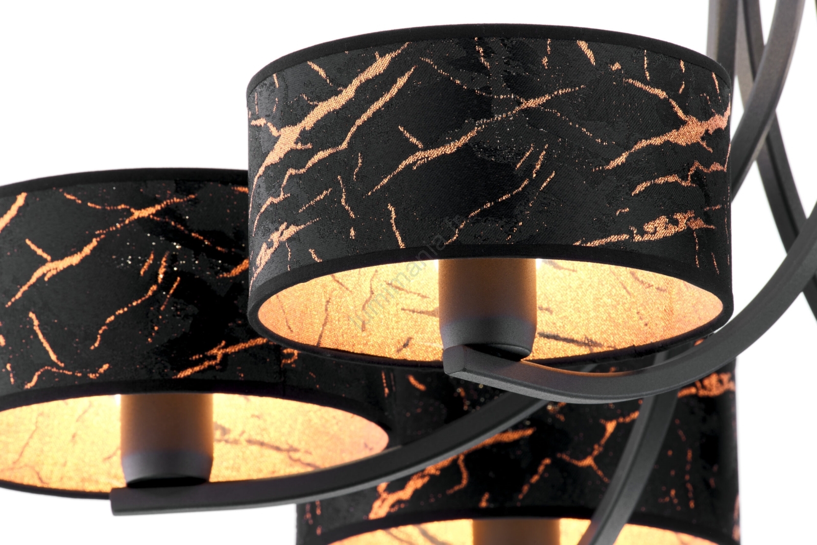 Jupiter 2108 - Lustre sur chaîne ARTHUR 6xE27/15W/230V noir/orange/décor imitation marbre caractérise un design agréable et fonctionnel.  Une ampoule à culot E27 convient pour ce luminaire. Ici, vous pouvez acheter d'autres ampoules à des prix avantageux. Vous aurez un ajout intéressant dans votre intérieur.