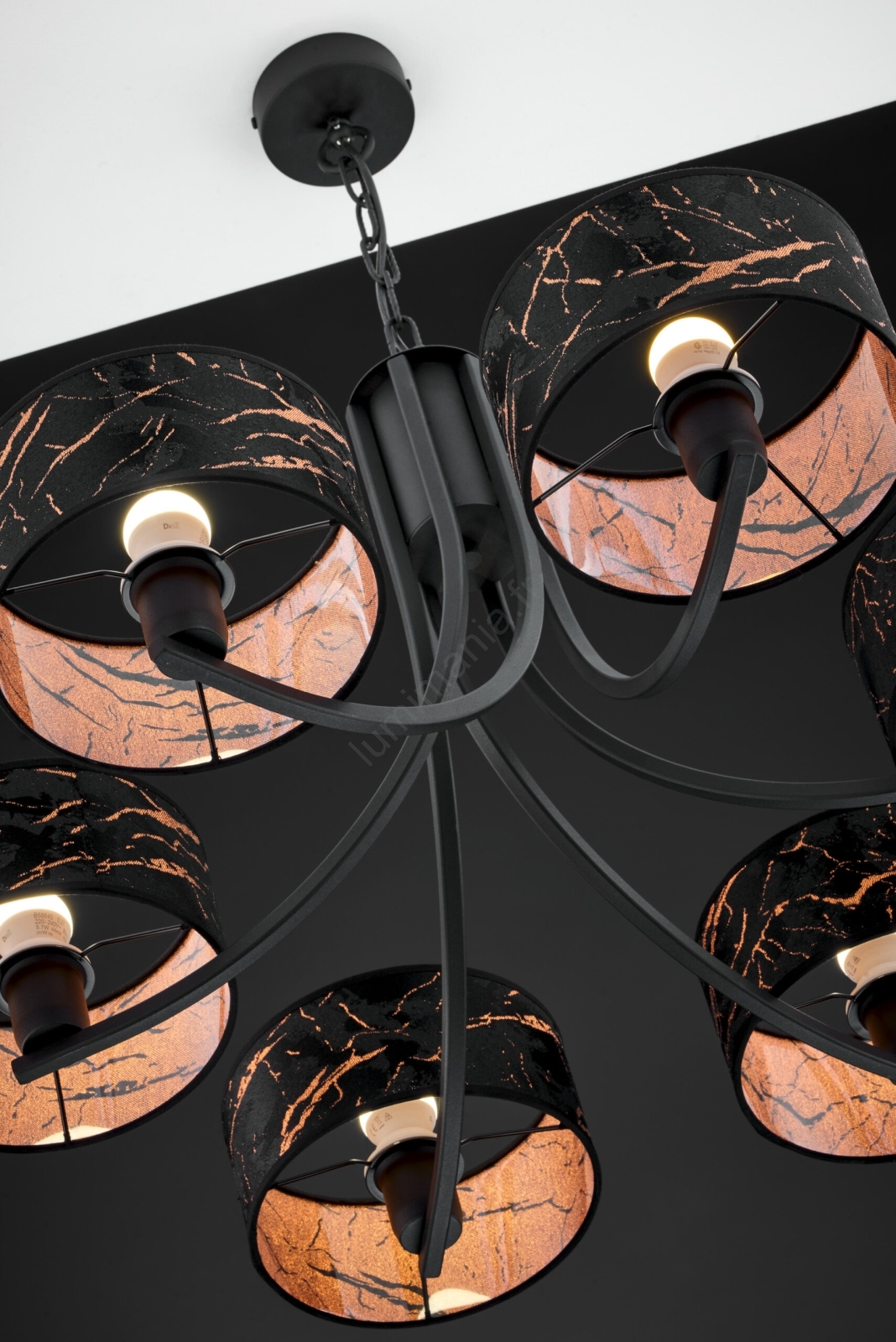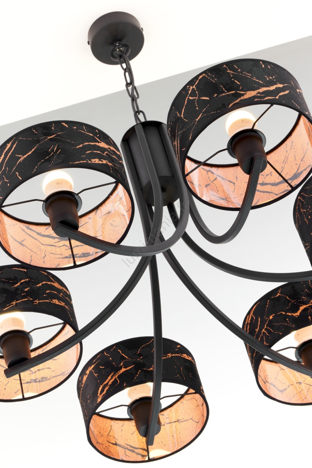 Jupiter 2108 - Lustre sur chaîne ARTHUR 6xE27/15W/230V noir/orange/décor imitation marbre