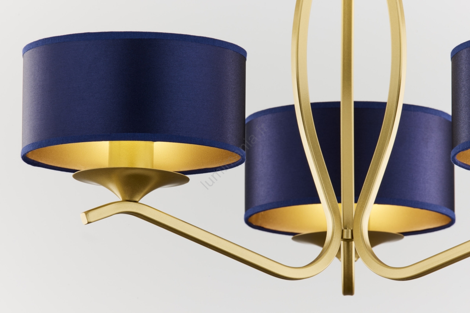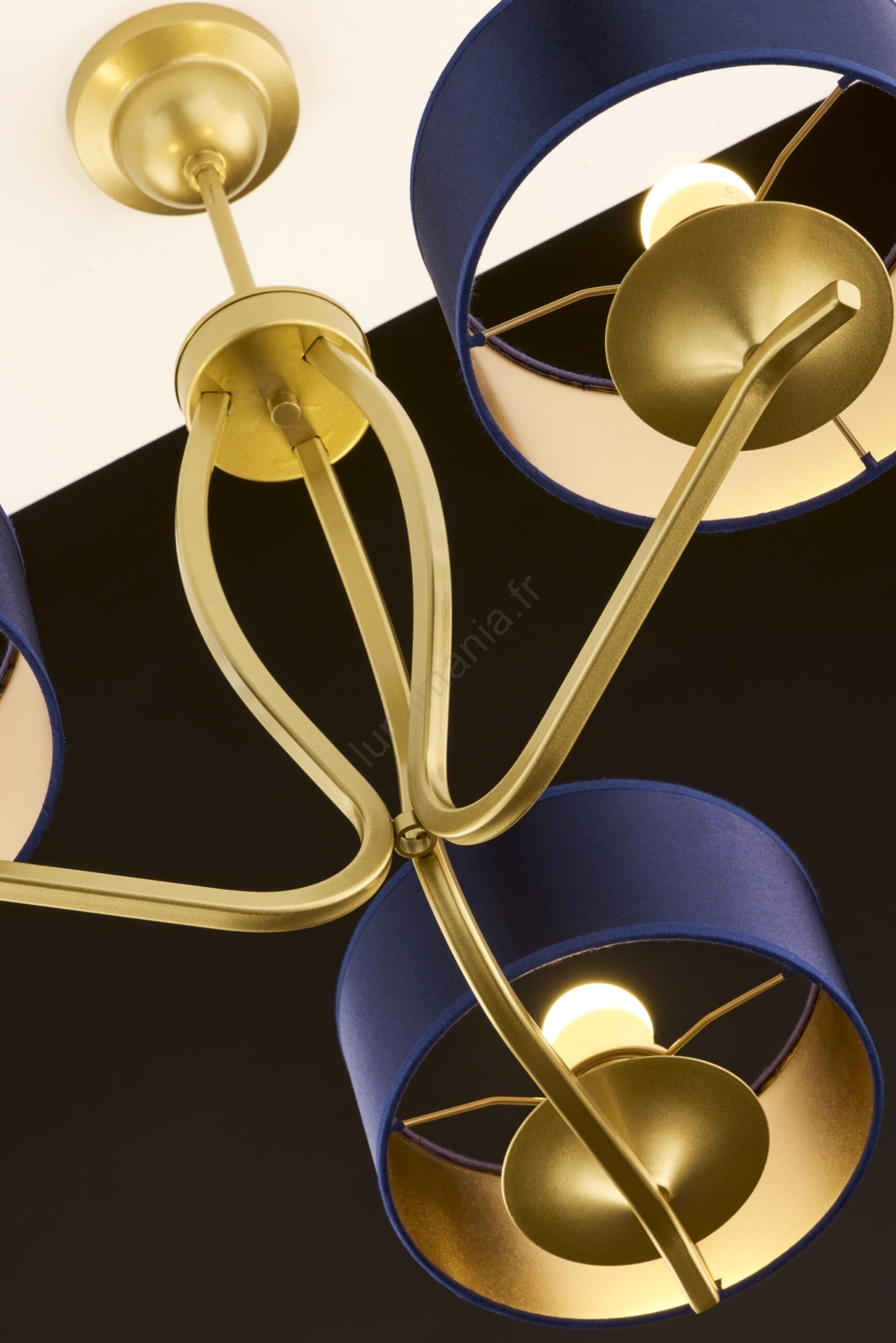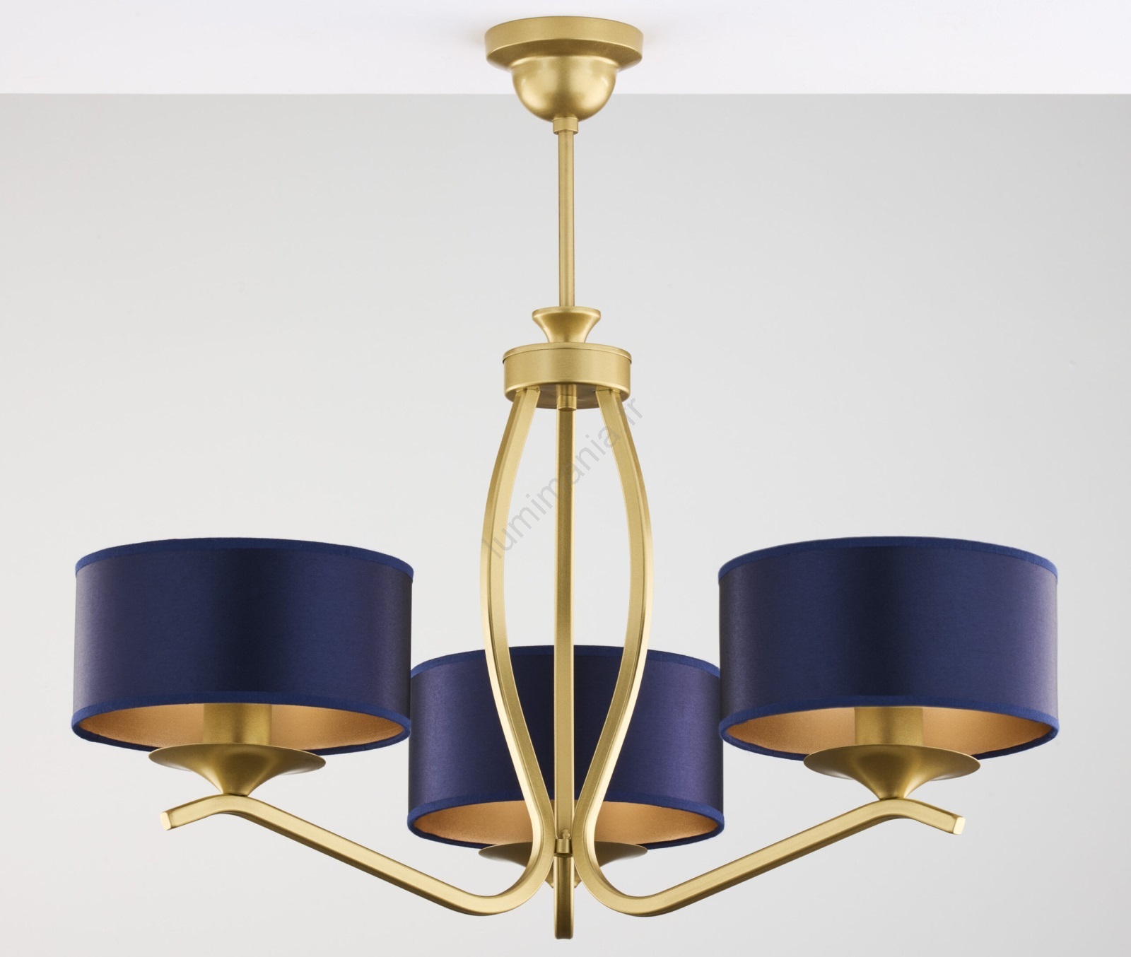Jupiter 2113 - Lustre sur tige KASZMIR 3xE27/15W/230V bleu/doré caractérise un design agréable et fonctionnel.  Une ampoule à culot E27 convient pour ce luminaire. Ici, vous pouvez acheter d'autres ampoules à des prix avantageux. Vous aurez un ajout intéressant dans votre intérieur.