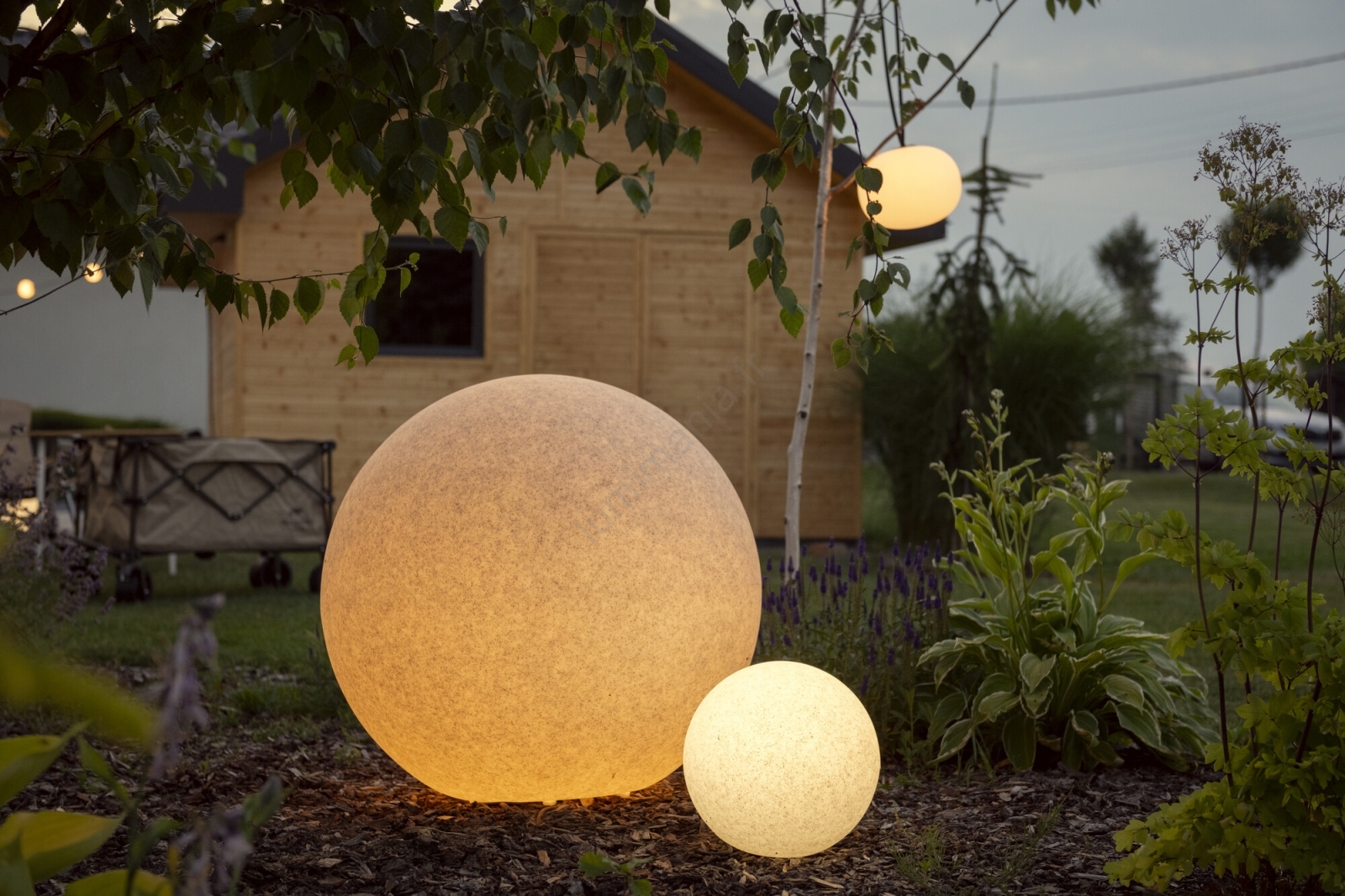 • Cette boule lumineuse imitation pierre s'intègre parfaitement aux rocailles et autour des arbustes du jardin.
