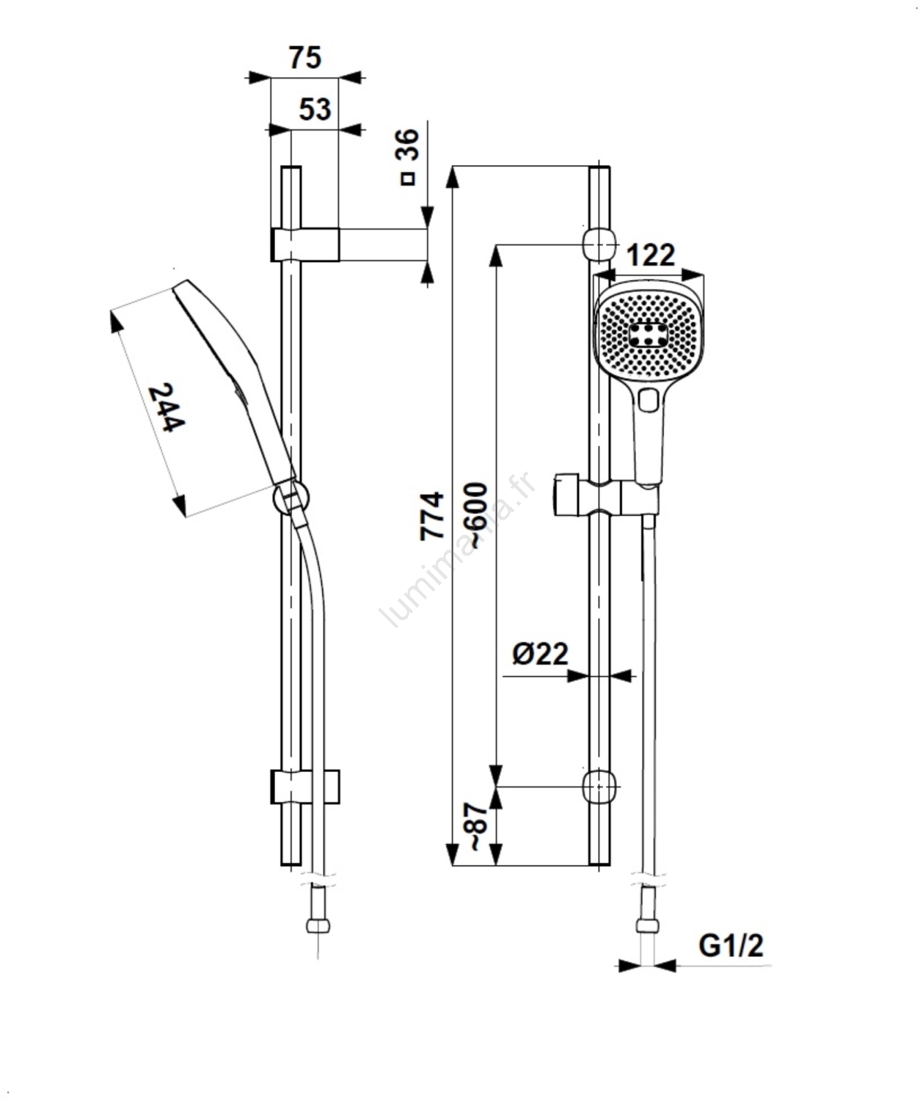 • Le colis contient : barre de douche, supports muraux - 2 pièces (dont 1 support réglable pour s'adapter aux trous existants), kit de montage (2 vis avec chevilles), douchette à main avec poignée, tuyau en PVC (L=1500 mm).