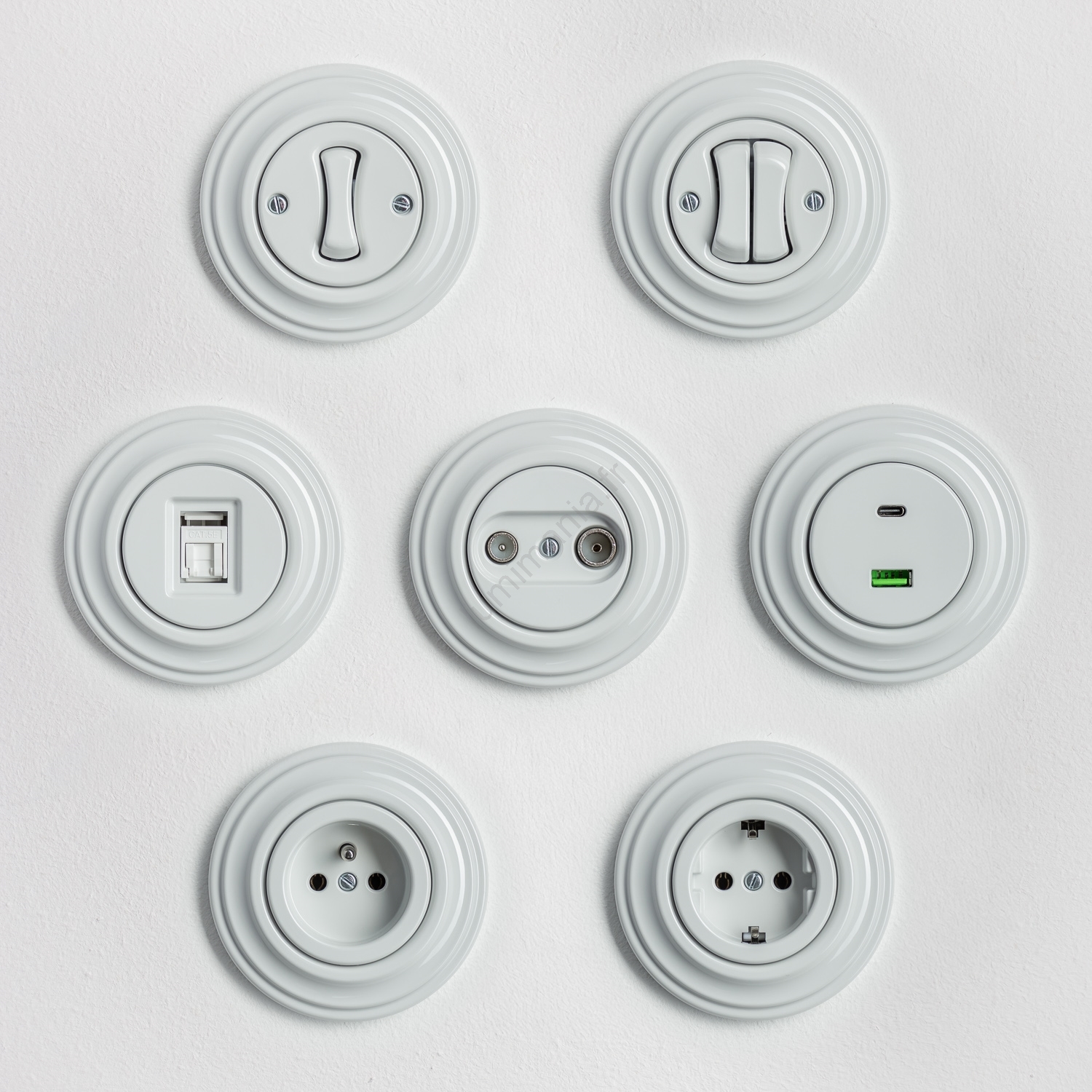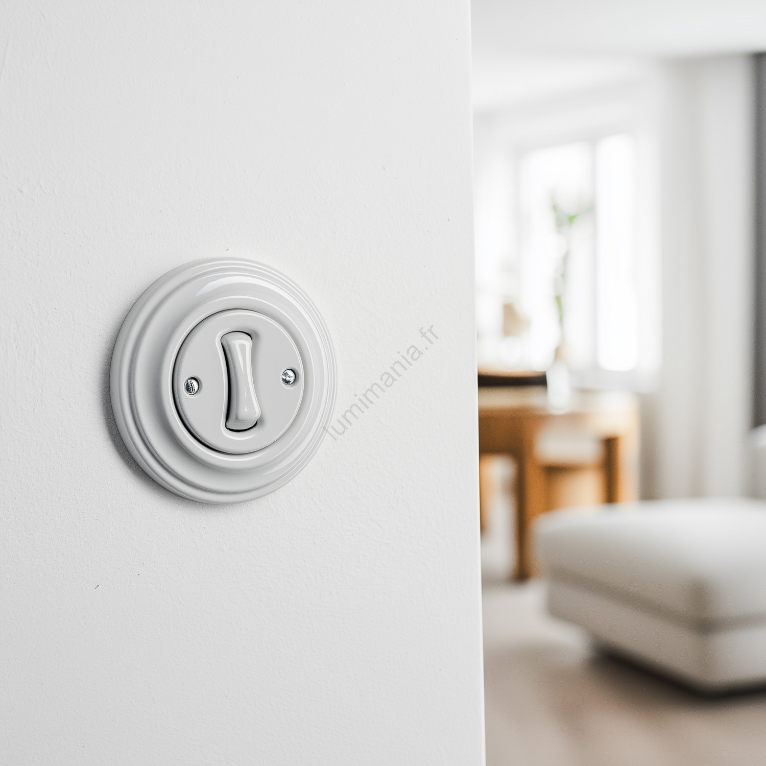 • Kliklap - Bouton rétro avec cadre en céramique blanche