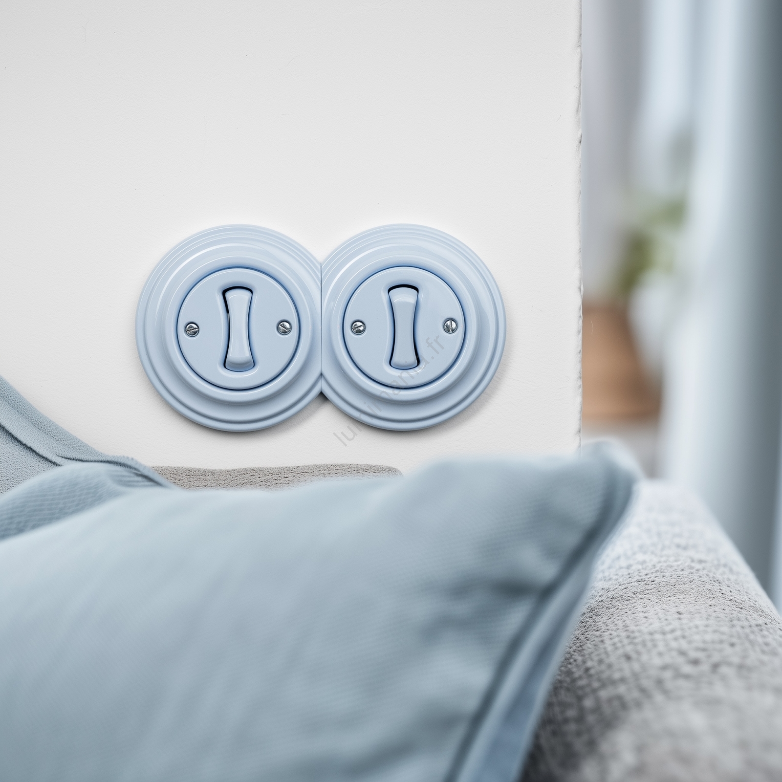 • Kliklap - Interrupteur double unipolaire au style rétro avec cadre n° 1, bleu