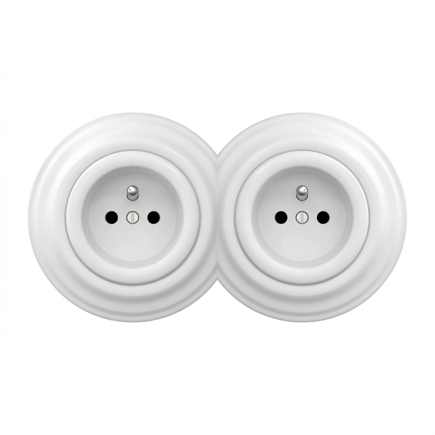 • Kliklap - Prise double murale rétro avec cadre 230 V en céramique blanche