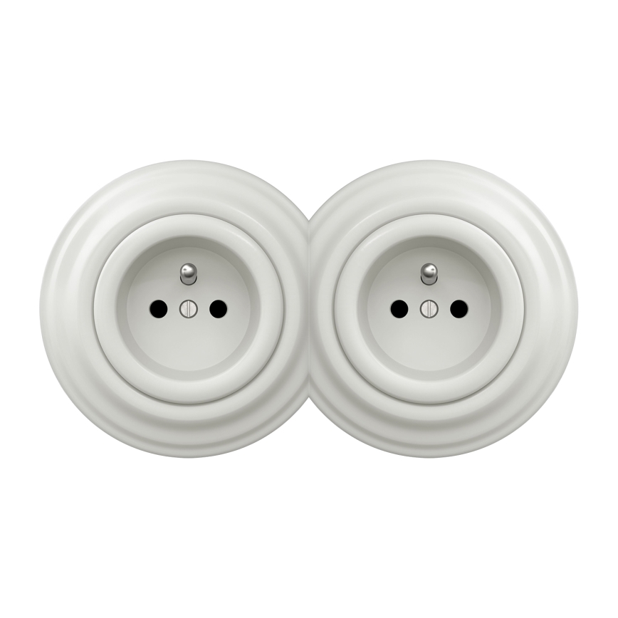 • Kliklap - Prise murale double style rétro avec cadre, 230 V, gris