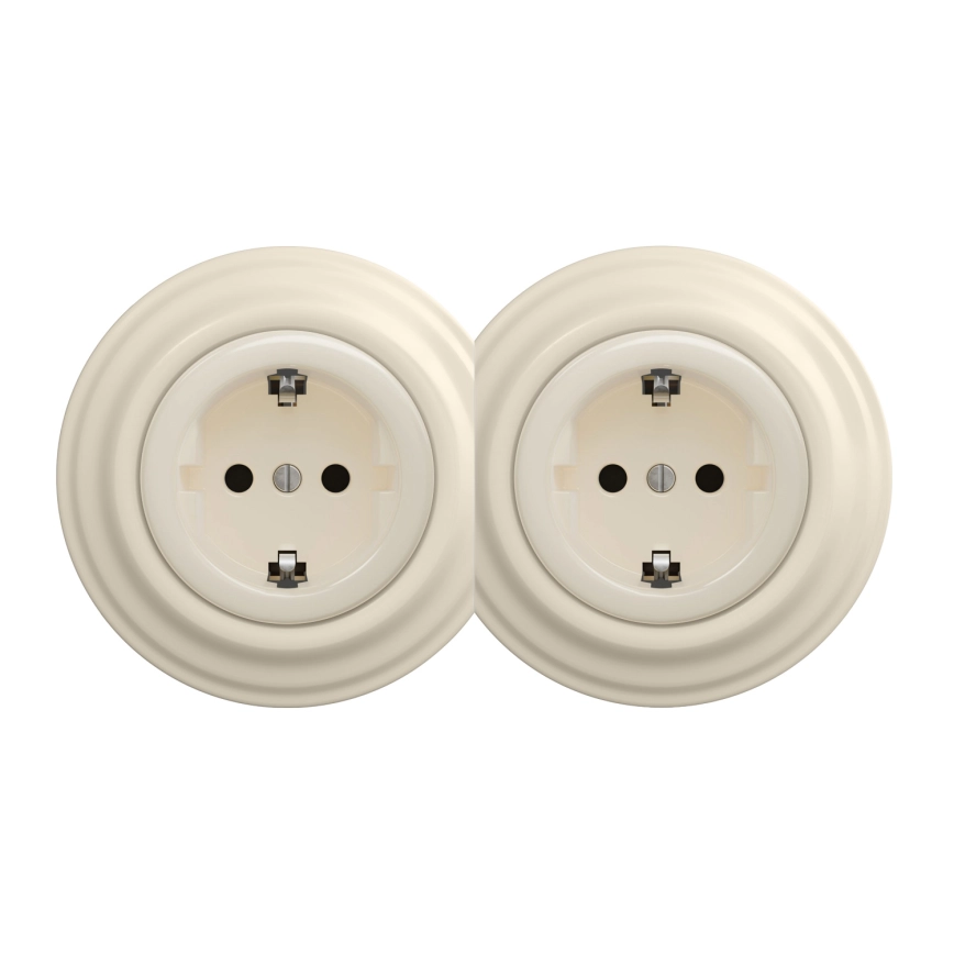 Kliklap - Prise murale double au style rétro avec cadre SCHUKO 230V/16A, beige
