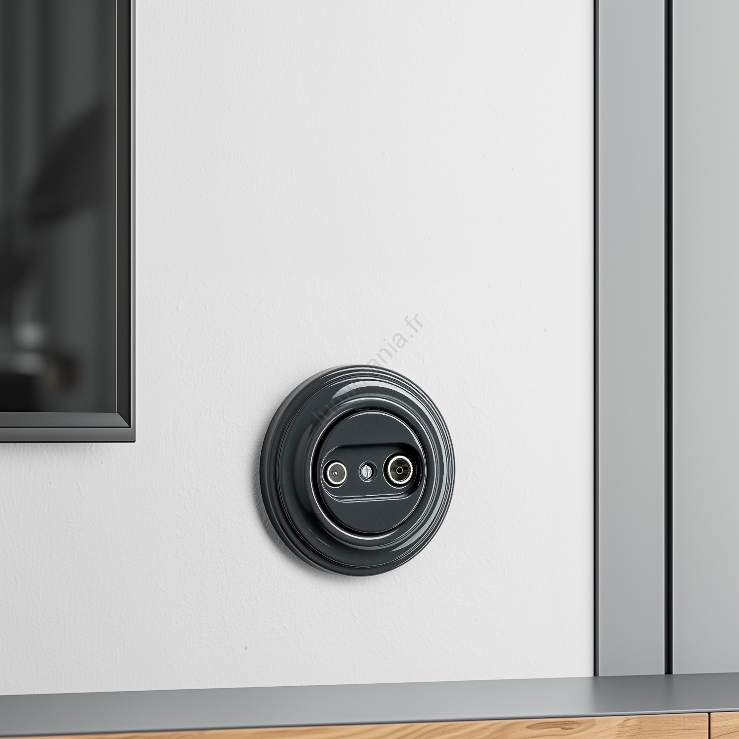 • Kliklap - Prise murale coaxiale rétro TV+Radio (passante) avec cadre noir