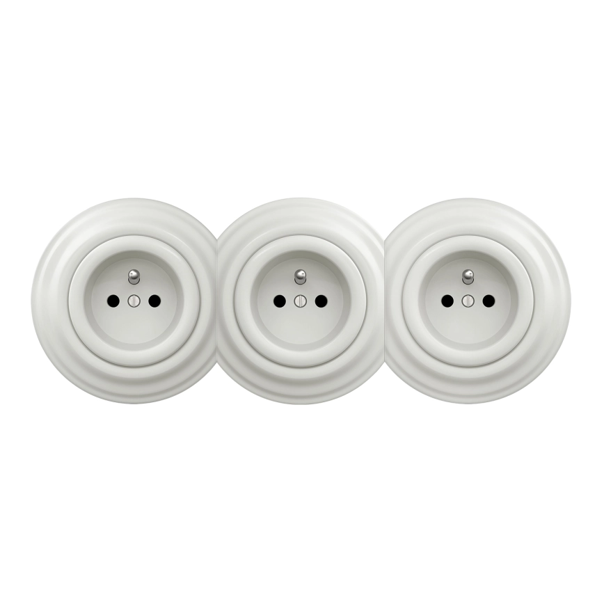 Kliklap - Prise murale triple rétro avec cadre, 230 V, blanche