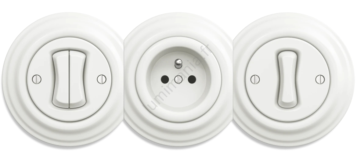 • Kliklap - Prise domestique rétro sans cadre 230 V céramique blanche