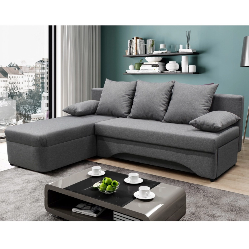 Canapé d'angle convertible réversible en L ALMEIDA gris avec coffre de rangement