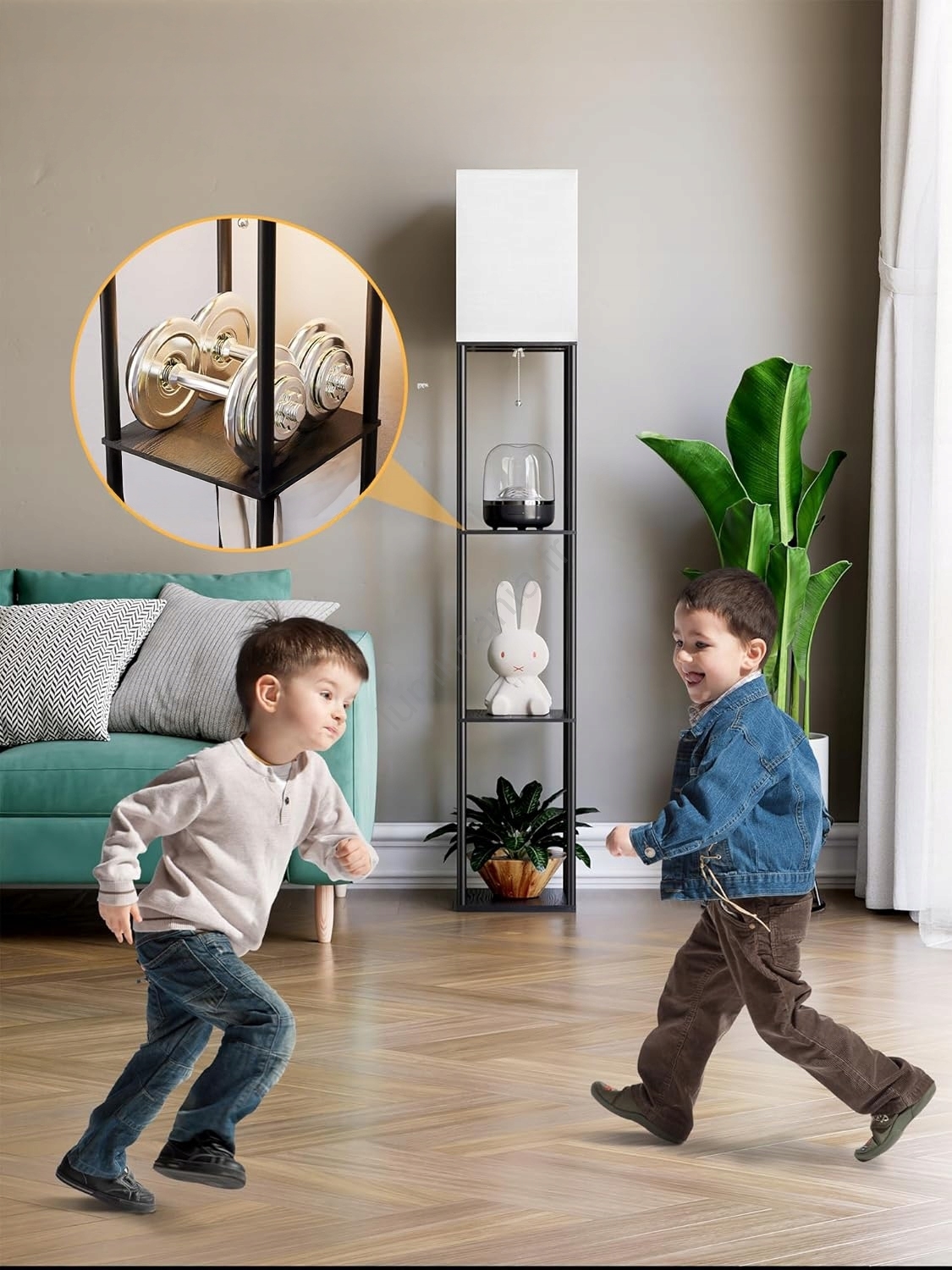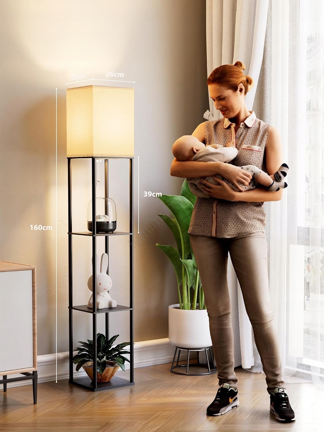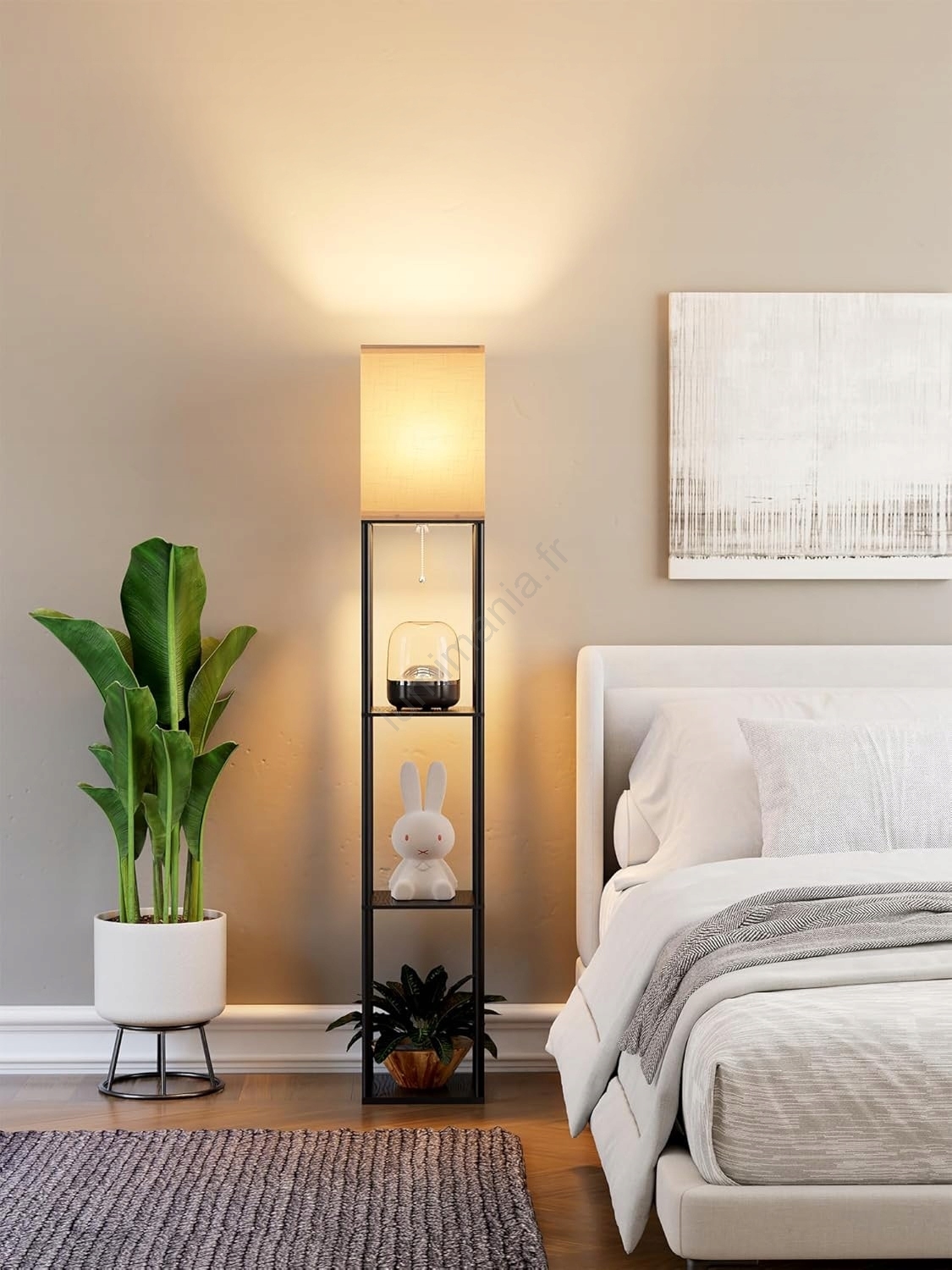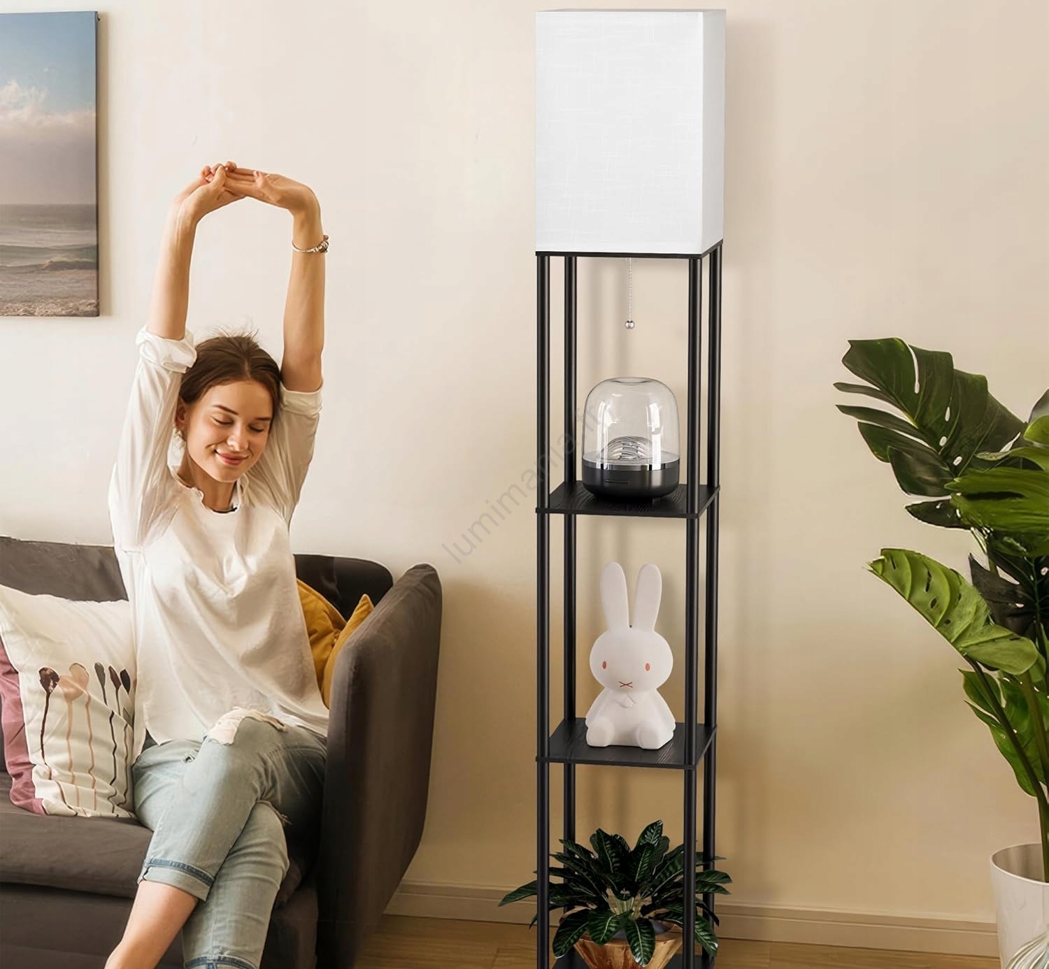 Lampadaire avec étagères 1xE27/40W/230V noir/blanc caractérise un design agréable et fonctionnel.  Une ampoule à culot E27 convient pour ce luminaire. Ici, vous pouvez acheter d'autres ampoules à des prix avantageux. Vous aurez un ajout intéressant dans votre intérieur.