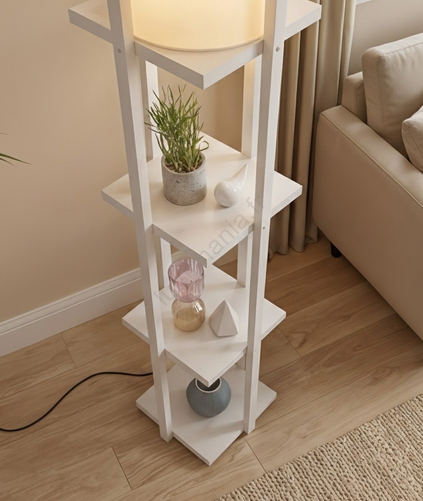 Lampadaire avec étagères NORA 1xE27/40W/230V blanc caractérise un design agréable et fonctionnel.  Une ampoule à culot E27 convient pour ce luminaire. Ici, vous pouvez acheter d'autres ampoules à des prix avantageux. Vous aurez un ajout intéressant dans votre intérieur.