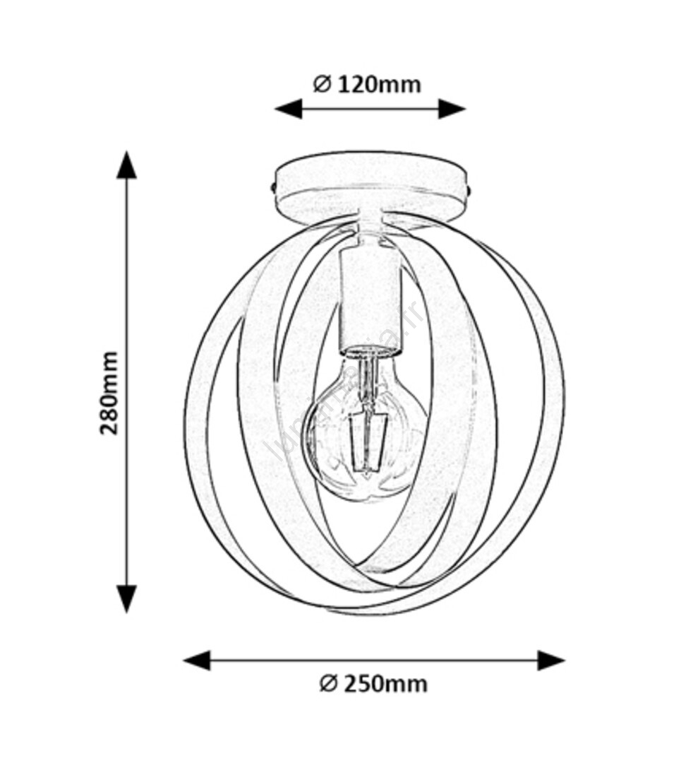 Le plafonnier Cortado, incarnant le style industriel, sera un choix idéal pour votre salon moderne, salle à manger ou chambre à coucher. Trois anneaux en fer noir, disposés de manière rotative autour de la source lumineuse centrale, forment une sphère élégante. Le luminaire se fixe au plafond grâce à une base décorative ronde et peut accueillir une ampoule d’une puissance maximale de 40W. Le type de douille est E27. Pour le plafonnier Cortado, vous pouvez opter pour une source lumineuse émettant une lumière blanche naturelle ou chaude. Si vous l’installez dans une chambre, nous recommandons une ampoule à lumière blanche chaude, idéale pour créer une ambiance chaleureuse et intime. Les dimensions du luminaire Cortado sont les suivantes : diamètre 250 mm, distance du plafond 280 mm, diamètre d’installation 120 mm. Ce modèle est livré sans source lumineuse.