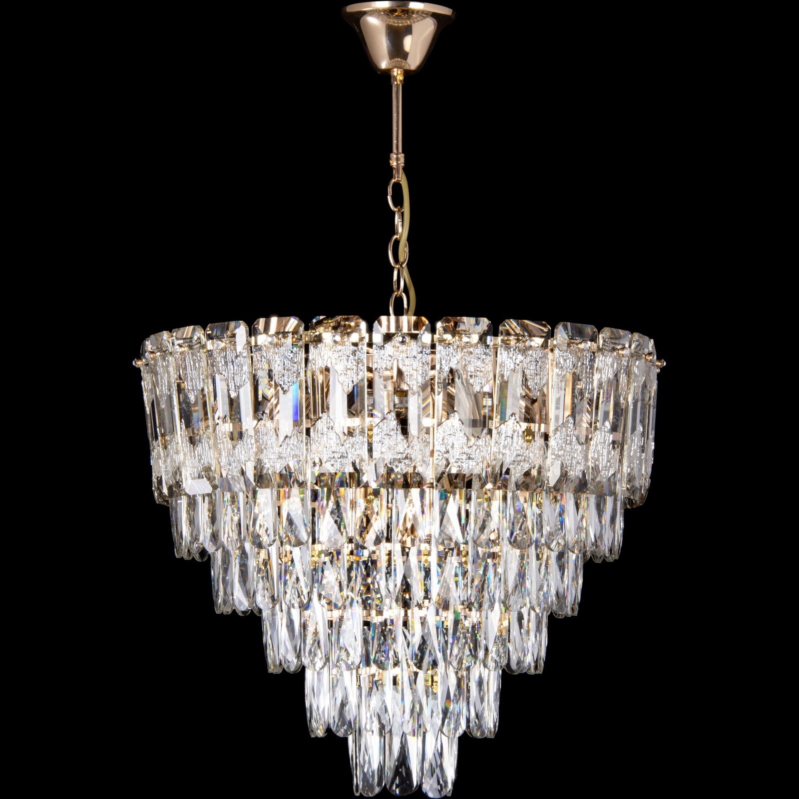 Lustre LED sur chaîne, 9 douilles E27 (max. 60 W / 230 V) + 6 LED 6 W, Ø 50 cm, doré