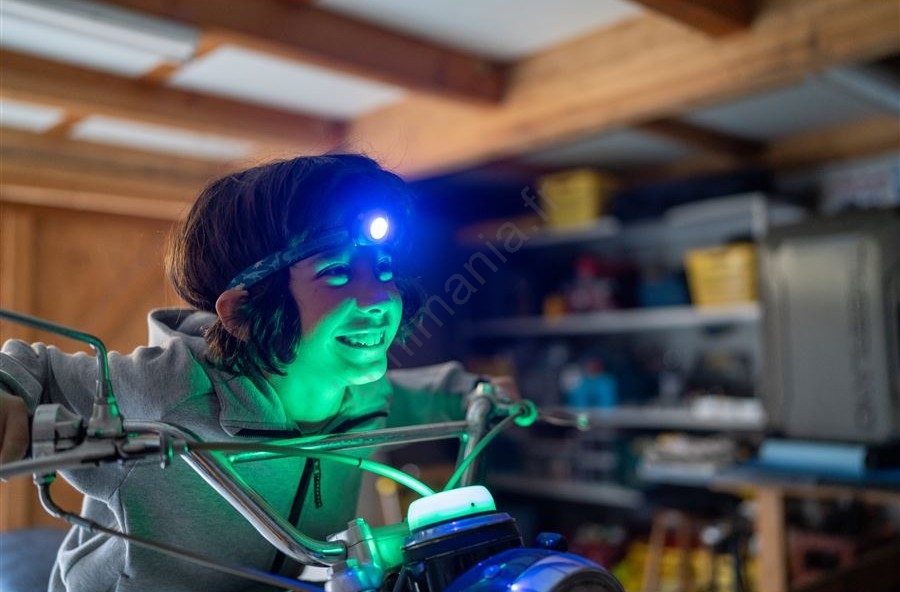 • Elle propose quatre couleurs de lumière – blanc, rouge, vert et bleu – ainsi qu'une fonction clignotante qui animera chaque fête d'enfants ou jeu du soir.