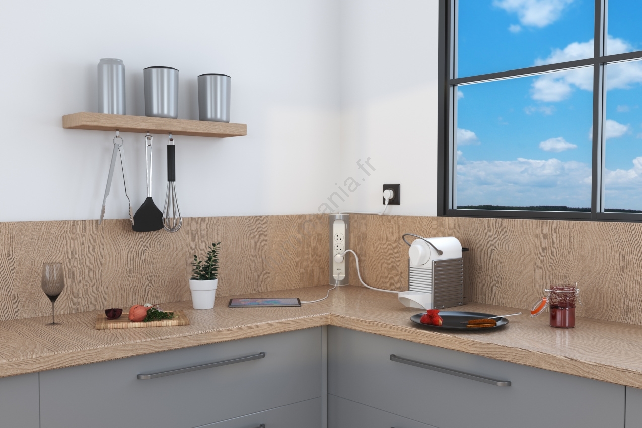 • Prise d'extension d'angle avec trois prises et deux ports USB.